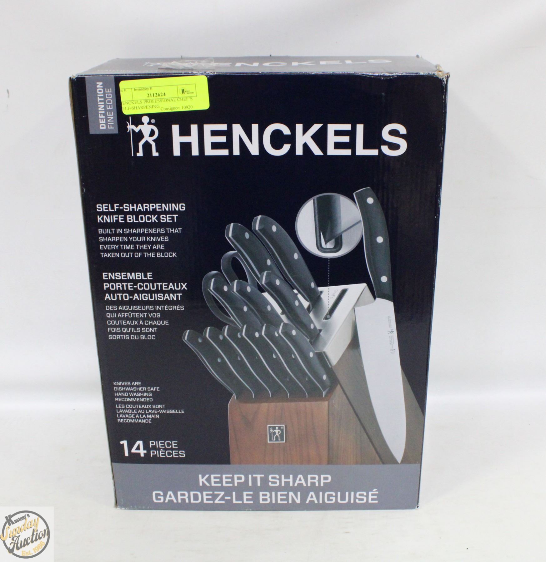 KNIFE BLOCK SET 14 PIECE IN BOX **WOODEN BASE IS CRACKED** NEEDS A SLIGHT REPAIR **ALL ITEMS MUST BE REMOVED BY 5PM SATURDAY, OCTOBER 4TH 2025. ALL REMAINING ITEMS WILL BE SUBJECT TO A $6.00 PER DAY STORAGE CHARGE. ANY ITEMS REMAINING AFTER MONDAY, OCTOBER 20TH 2025 WILL BE CONSIDERED FORFEITED. NO REFUNDS WILL BE ISSUED FOR FORFEITED ITEMS. TO SCHEDULE A PICK UP APPOINTMENT CLICK HERE