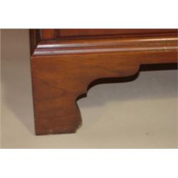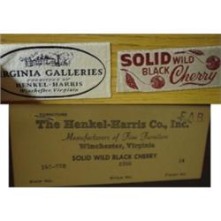 HENKEL-HARRIS BLACK CHERRY SIDEBOARD. Marked with label on inside of drawer and on reverse. Good overall condition. 36" H, 65.5" W, 20.5" D