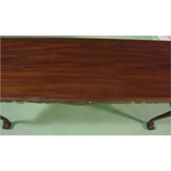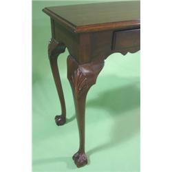 HENKEL-HARRIS MAHOGANY CHIPPENDALE STYLE CONSOLE TABLE. Two dovetailed drawers with shell decoration in middle of apron. 30.5" H, 54.5" L, 17" W
