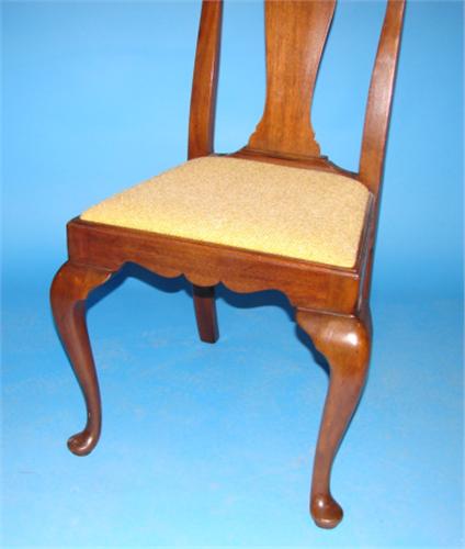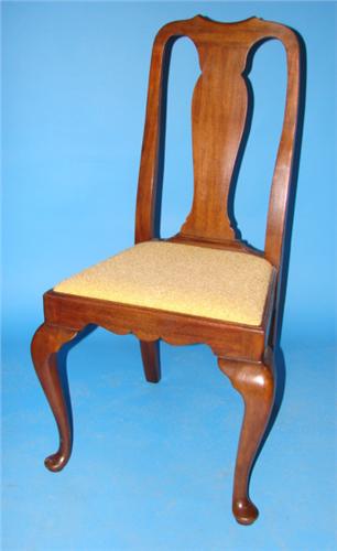 HENKEL-HARRIS MAHOGANY QUEEN ANNE STYLE SIDE CHAIR. Marked with label on underside. Style No. 107S. Finish No. 29. 39" H to top of back, 18" H to top of seat, 18" W