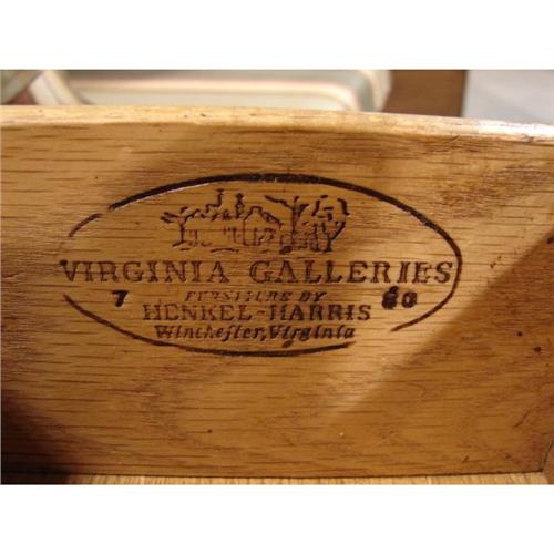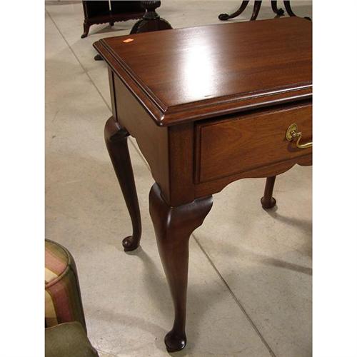 HENKEL-HARRIS MAHOGANY QUEEN ANNE STYLE STAND. Has single dovetailed drawer. Branded on inside of drawer “7/80”. 26” H, 22.5” W, 17” D