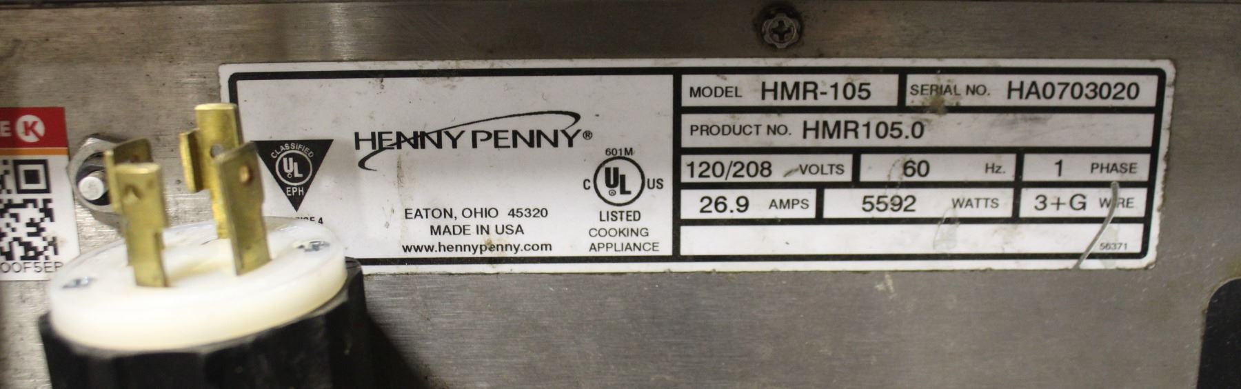 DISPLAY, W/ DIVIDER RAILS, INSERTS, FALSE BOTTOMS, M# HMR-105, SINGLE PHASE 120/208V, 26.9A, 5592W, 14-30 PLUG CONFIGURATION(3W + G)**ALL BIDS SUBJECT TO BANK, BAILIFF/OWNER APPROVAL**