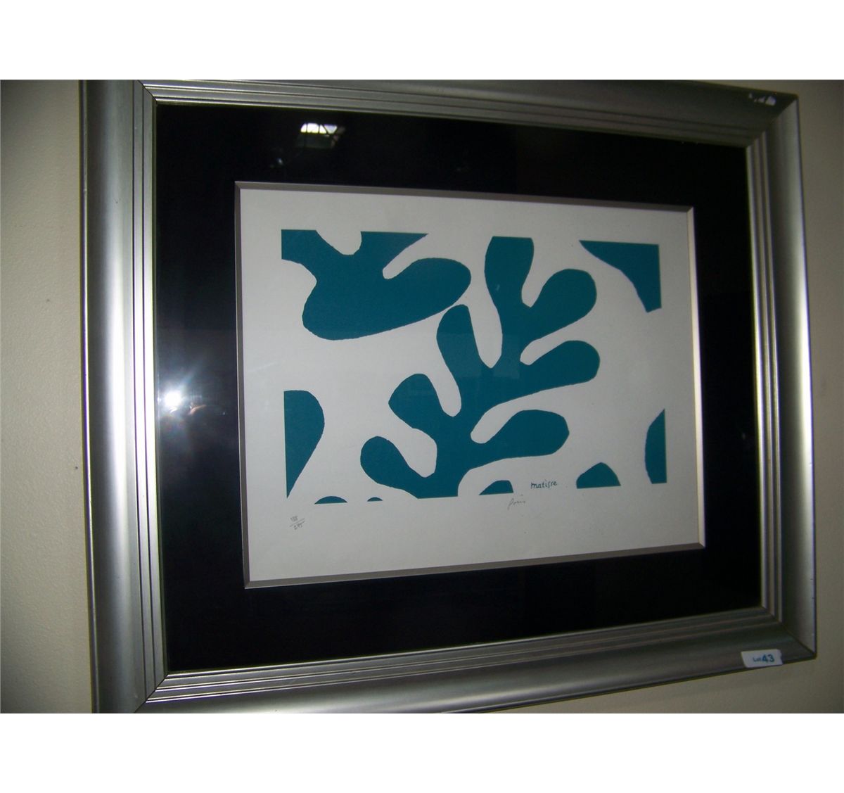 HENRI MATISSE NUMBERED LITHOGRAPH, CUSTOM FRAMED #188/275 35T X 41W