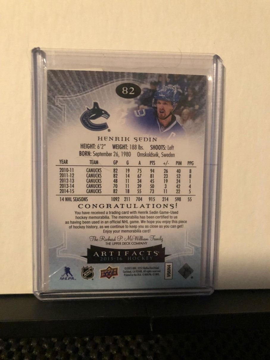 HENRIK SEDIN 2015-16 ARTIFACTS GAME USED DUAL JERSEY 125/125