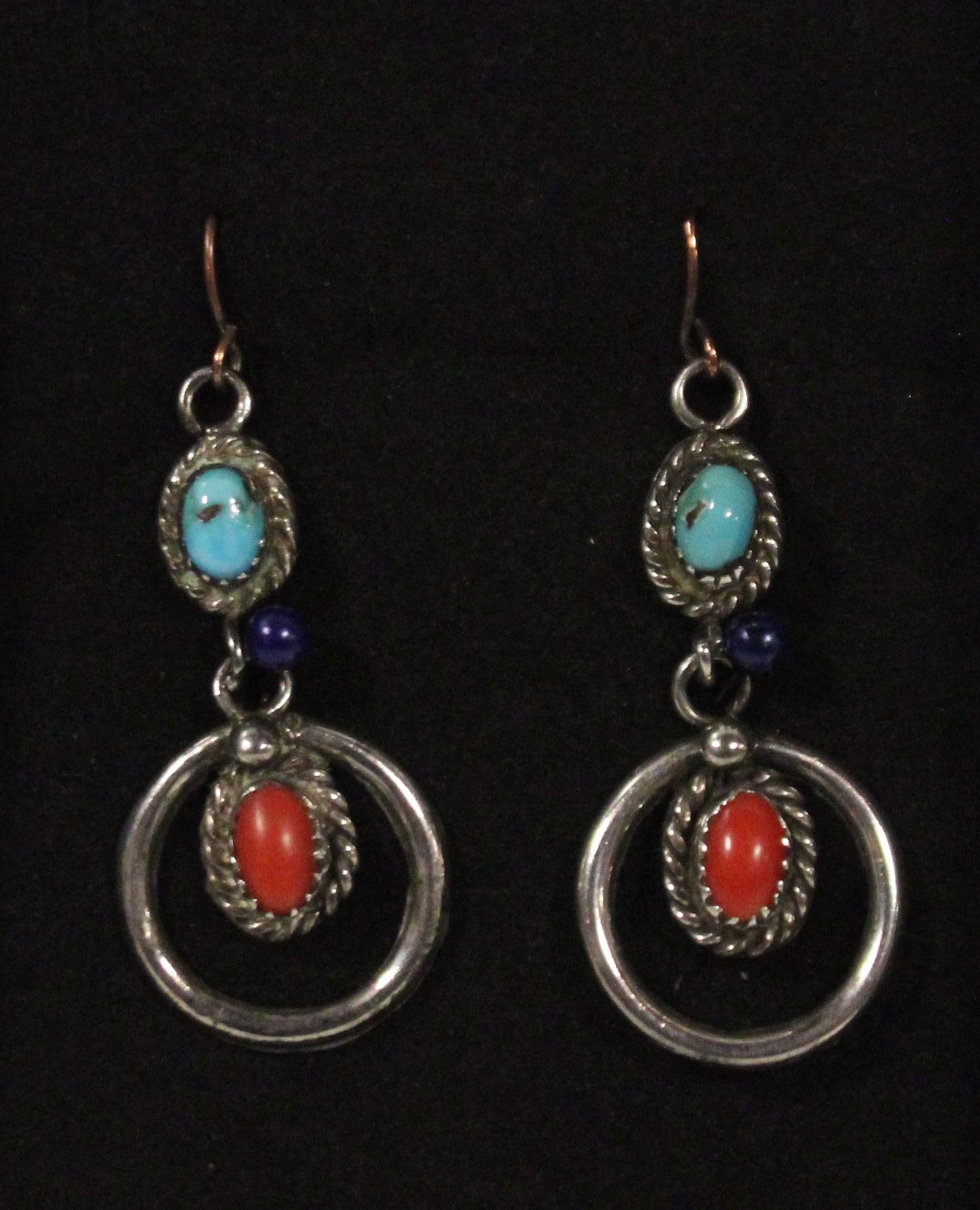 HENRY DAVIS STER SILV TURQUOISE & CORAL EARRINGS