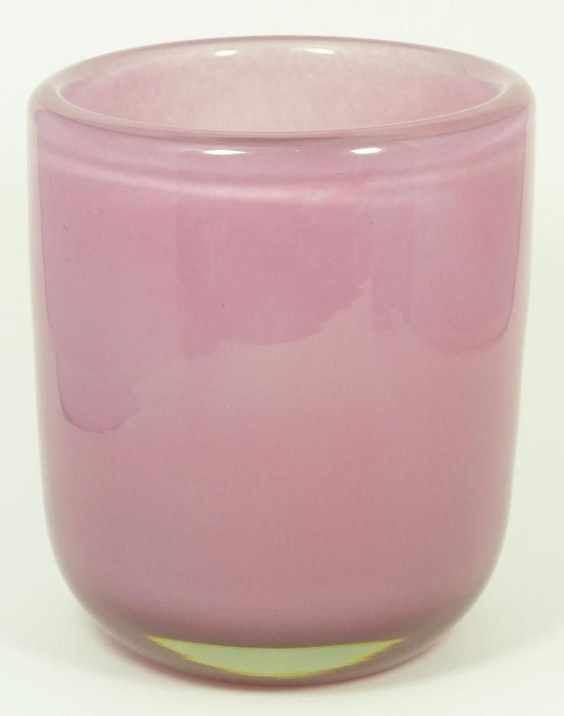 Signed Henry Dean Studio pink art glass vase. Signed to bottom. Measures 7 3/8" height x 6 1/2" diameter (18.7cm x 16.5cm). Total weight of 3282 grams.
