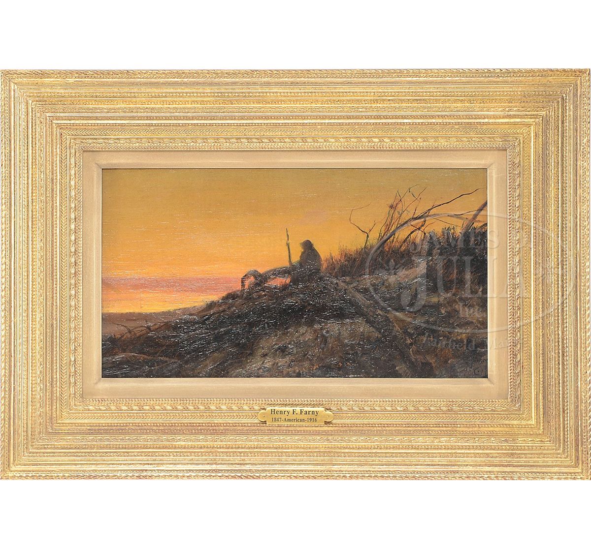 HENRY F. FARNY (American, 1847-1916) FIGURE WITH RIFLE IN LANDSCAPE AT SUNSET