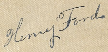 (1863 - 1947) American automobile manufacturer and founder of the Ford Motor Company, his use of the assembly line revolutionized the industry. A fine Ford item, his personal copy of The Complete Sayings of Jesus Christ A Glowing Short-Story The King James of Christ's Own Words, (Williamsburg, Ma: D. H. Pierpont & Co.), 1927, 279pp. 3" x 5 1/2", pebbled red faux leather boards. The sayings of Jesus compiled chronologically. boldly signed "Henry Ford" on the front flyleaf. Spine removed but expertly replaced with linen repair which is also apparent on inside front cover and flyleaf. Overall fine. We cannot locate any other signed examples of this tract, leading us to believe this was Ford's personal copy. Ford, an Episcopalian and never outspoken on religious matters, did comment in an interview: "Somewhere there is a Master Mind which sends brain waves or messages to us—the Brain of Mankind, the Brain of the Earth. There is a Great Spirit. Call it Creative Evolution or World Mind. Call it Collective Intelligence or call it God...".