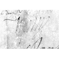 (1551 - 1589) King of France who aided Catherine de Medicis in planning the Massacre of St. Bartholemew, sided under duress with the Huguenots in their conflicts with the Catholics, after his mother's death he was murdered by the monk Jacques Clement, ending the Valois male line. D.S. "Henry" as "King of France and Poland", 1p. oblong folio, Paris, 1582, in French. Untranslated. Faults include very light but legible signature with cancelation cut traversing it, two small holes, only one affecting three letters of text, cut-canceled at lower-right as usual. Sold as-is, should be viewed.