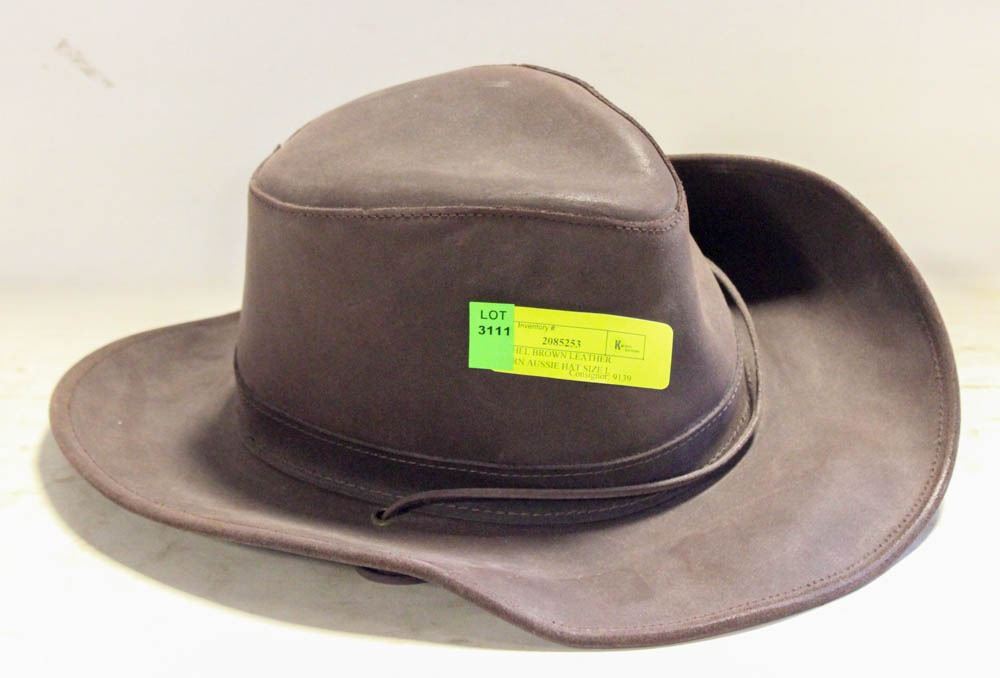HENSCHEL BROWN LEATHER WESTERN AUSSIE HAT SIZE L
