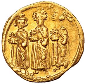 HERACLIO, HERACLIO CONSTANTINO Y HERACLONAS. Sólido. Constantinopla. R/ Sin I a der. SBB-769. Rayitas. MBC+.