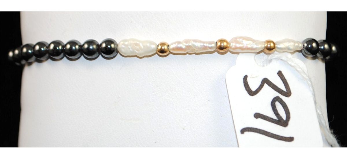 HERATITE & FRESH WATER PEARL BRACELET WITH 14K YELLOW GOLD CLASP