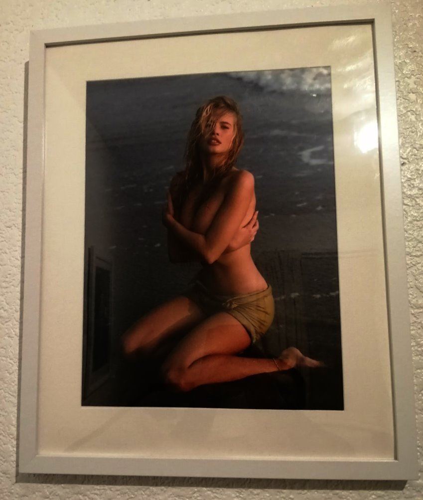 Supermodel Claudia Schiffer in Malibu, taken by photographer Herb Ritts. Printed later, during life time of Herb Ritts. Herb Ritts estate stamped on verso. Beautiful C print of her in May 1990 for Rolling Stone magazine.