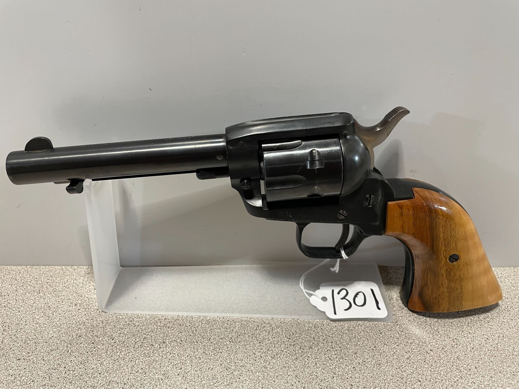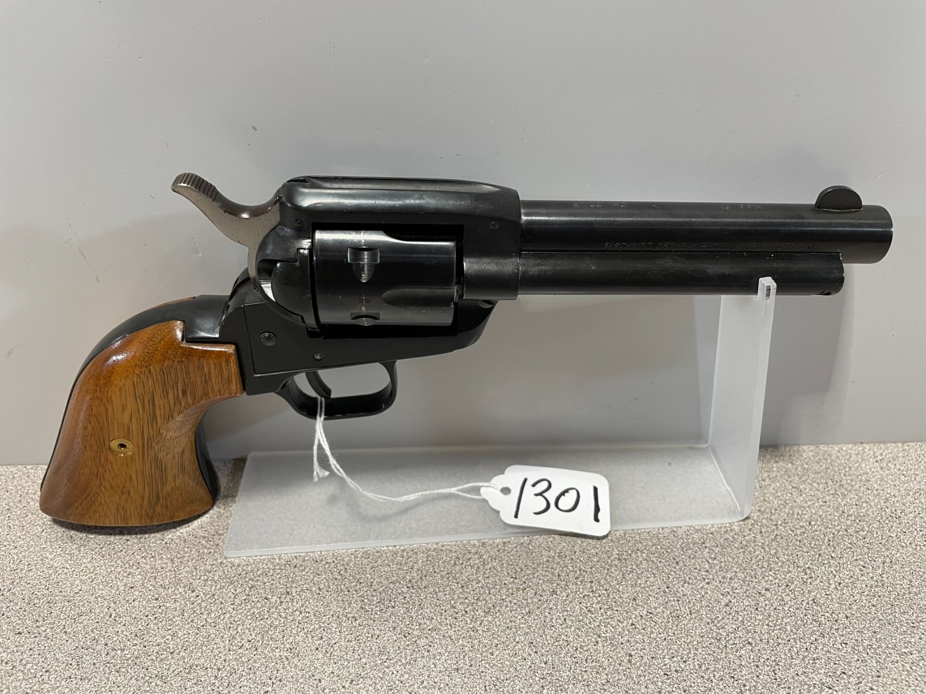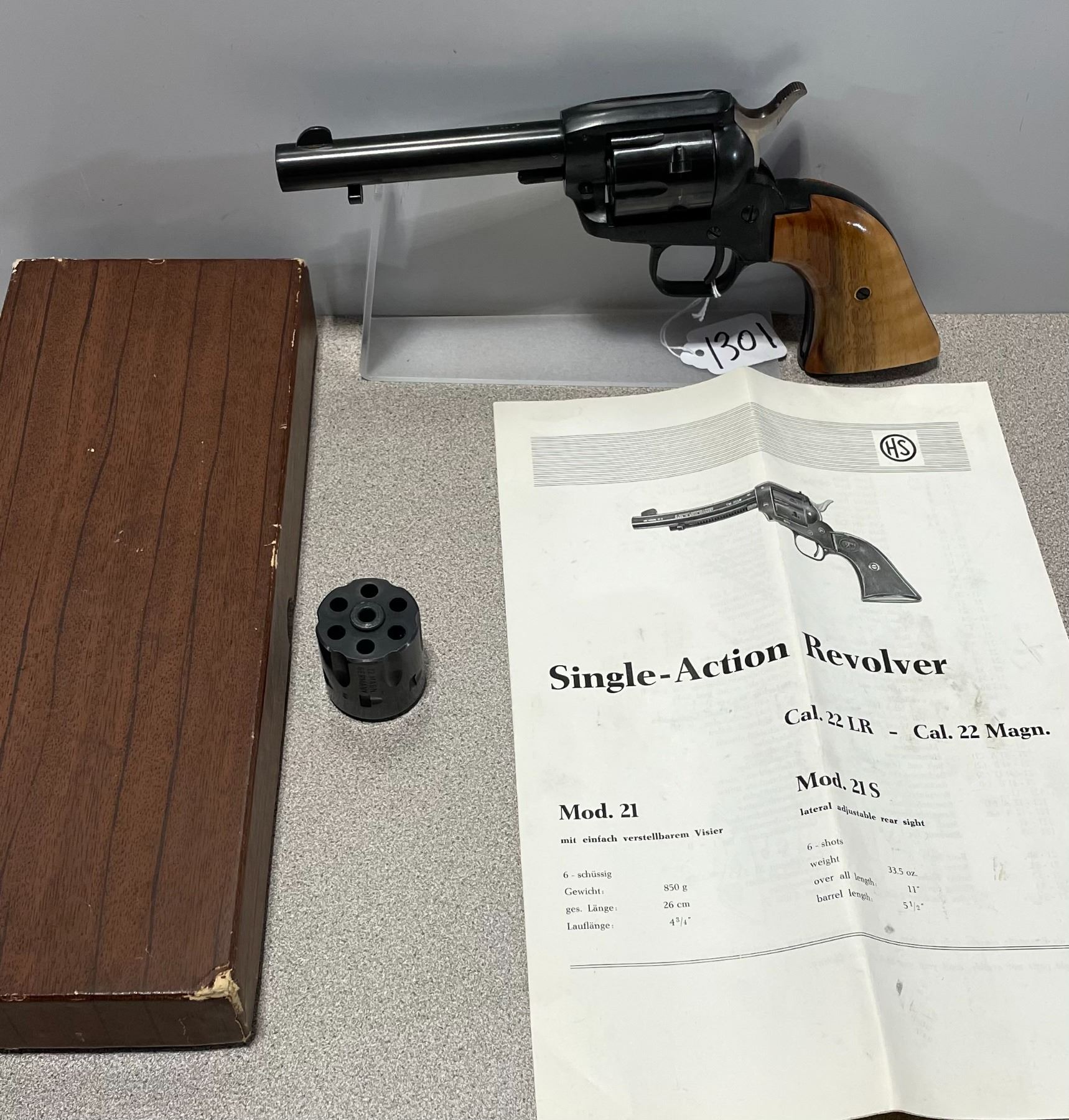 SPECS: REVOLVER. 121 MM BARREL. EXTRAS: ORIG BOX, MANUAL. .22 MAG CYLINDER. CONDITION: VG OVERALL INCLUDING BORE. S/N: 61162. RESTRICTED.