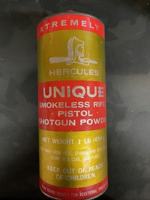 1 – 1LB BOTTLE HERCULES UNIQUE SMOKELESS POWDER – BOTTLE IS ALMOST FULL