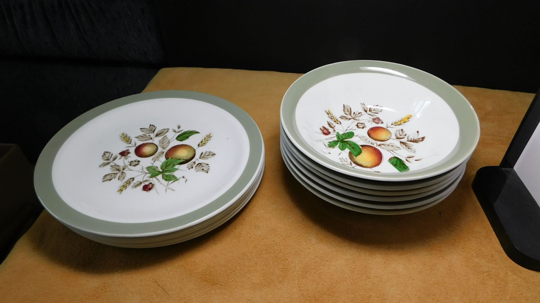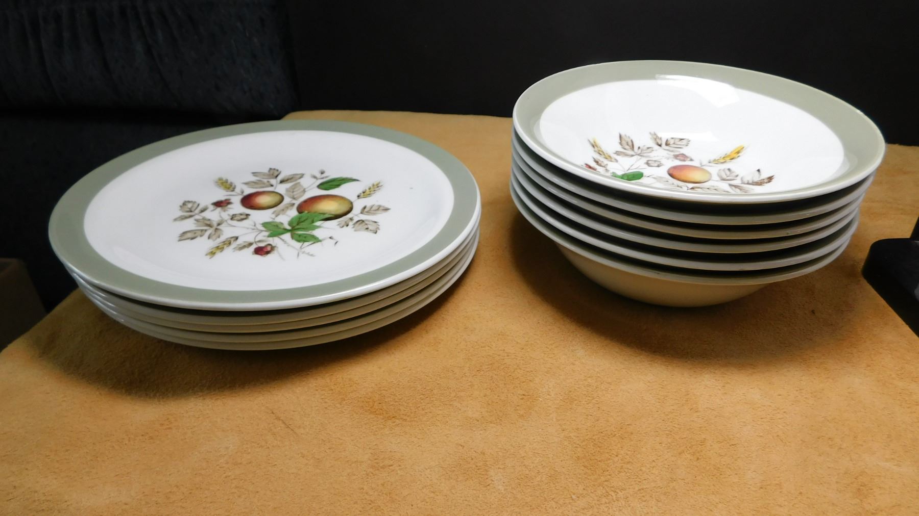 HEREFORD PATTERN, ALFRED MEAKIN, FIVE DESSERT PLATES, SIX DESSERT BOWLS