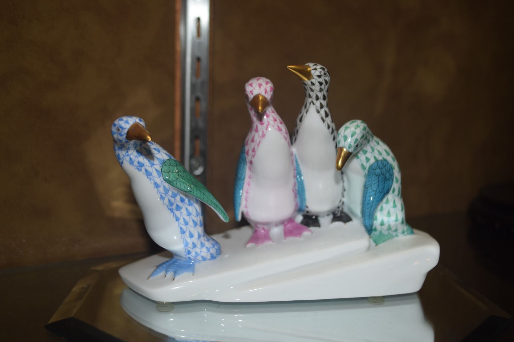 HEREND PORCELAIN FIGURINE: PENGUIN GROUP ON ICE, MULTI-COLOR