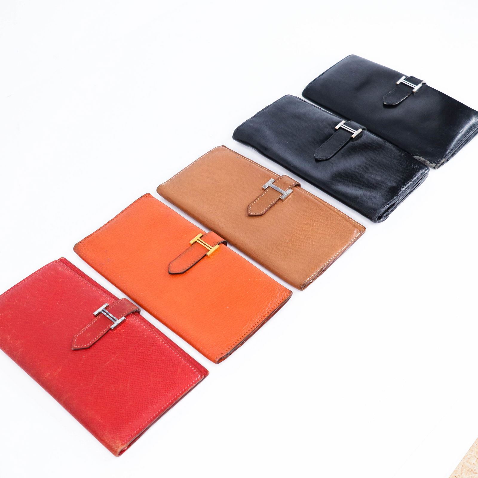 Brand: HERMÈS Item: Set of 5 wallets including Bearn model Condition: F Rank – Sold as-is; please refer to photos for detailed condition. Grouped due to wear. Accessories: None