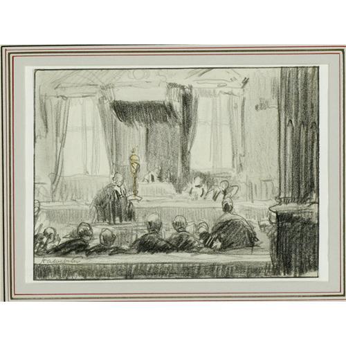 <B>HERMANN ARMOUR WEBSTER (American 1878-1970)</B></I><BR>Courtroom<BR>Pencil on paper<BR>5.25 x 7in.<BR>Signed lower left<BR>
