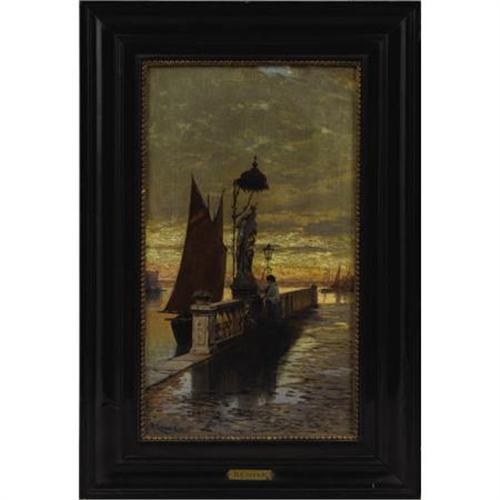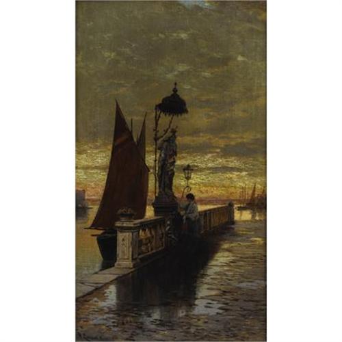 <B>HERMANN DAVID SALOMON CORRODI </B></I>(Italian 1844-1905)<BR><I>Prayer at Dusk, Venice</B></I><BR>Oil on canvas<BR>19-3/4 x 11 inches (50.2 x 27.9 cm)<BR>Signed lower left: <I>H. Corrodi Ro....</B></I><BR> <B>Condition Report:</B> <BR><BR><b>Shipping:</b> Requires 3rd Party Shipping (<a target="_blank" href="http://www.heritageauctions.com/common/shipping.php">view shipping information</a>)