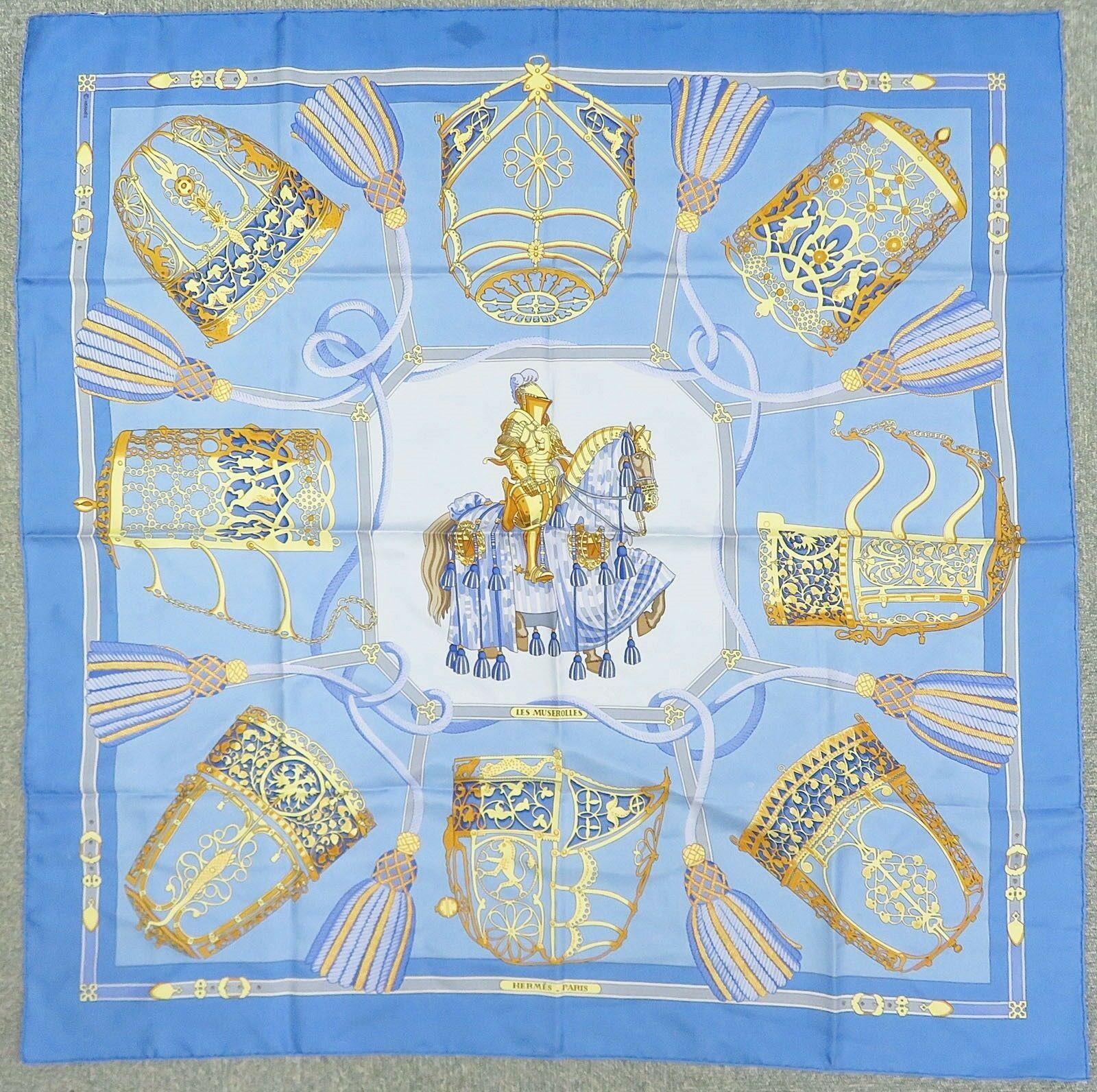 Description: 100% Silk HERMES "LES MUSEROLLES" Blue Scarf