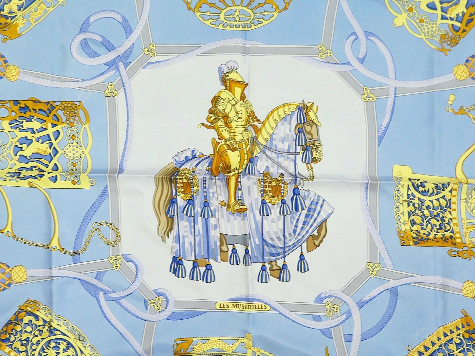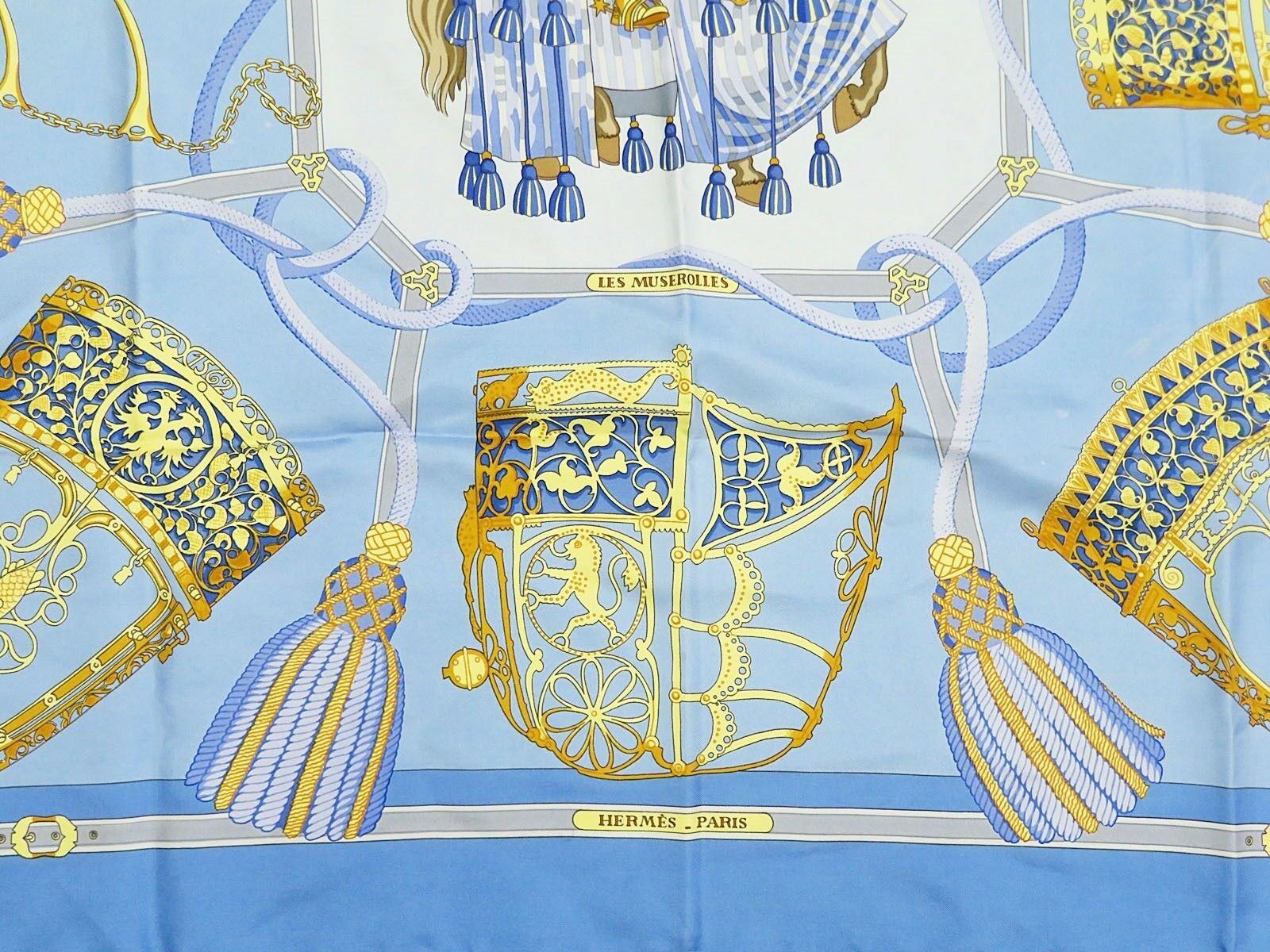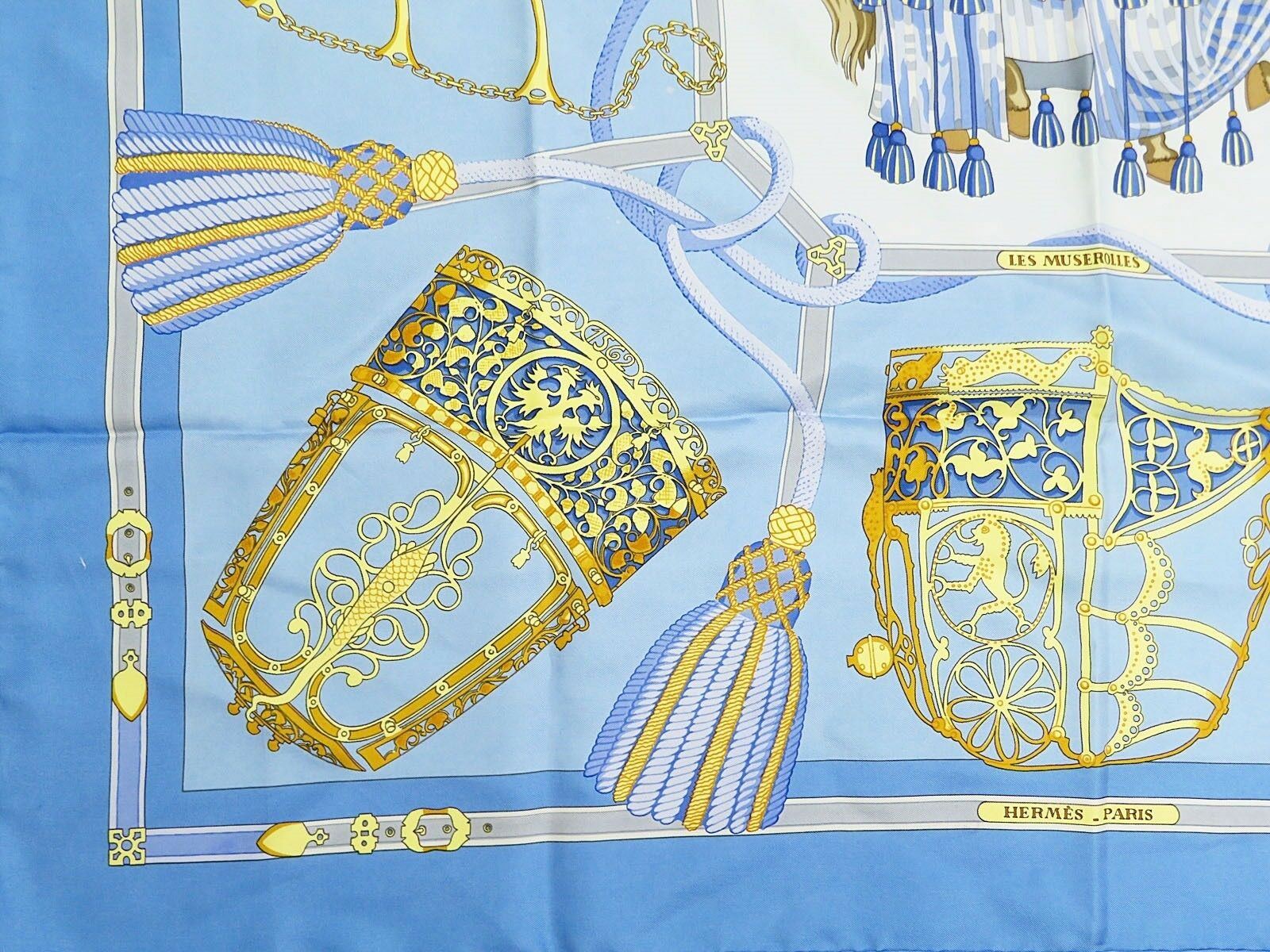 Style: HERMES "LES MUSEROLLES" Blue100% Silk Scarf