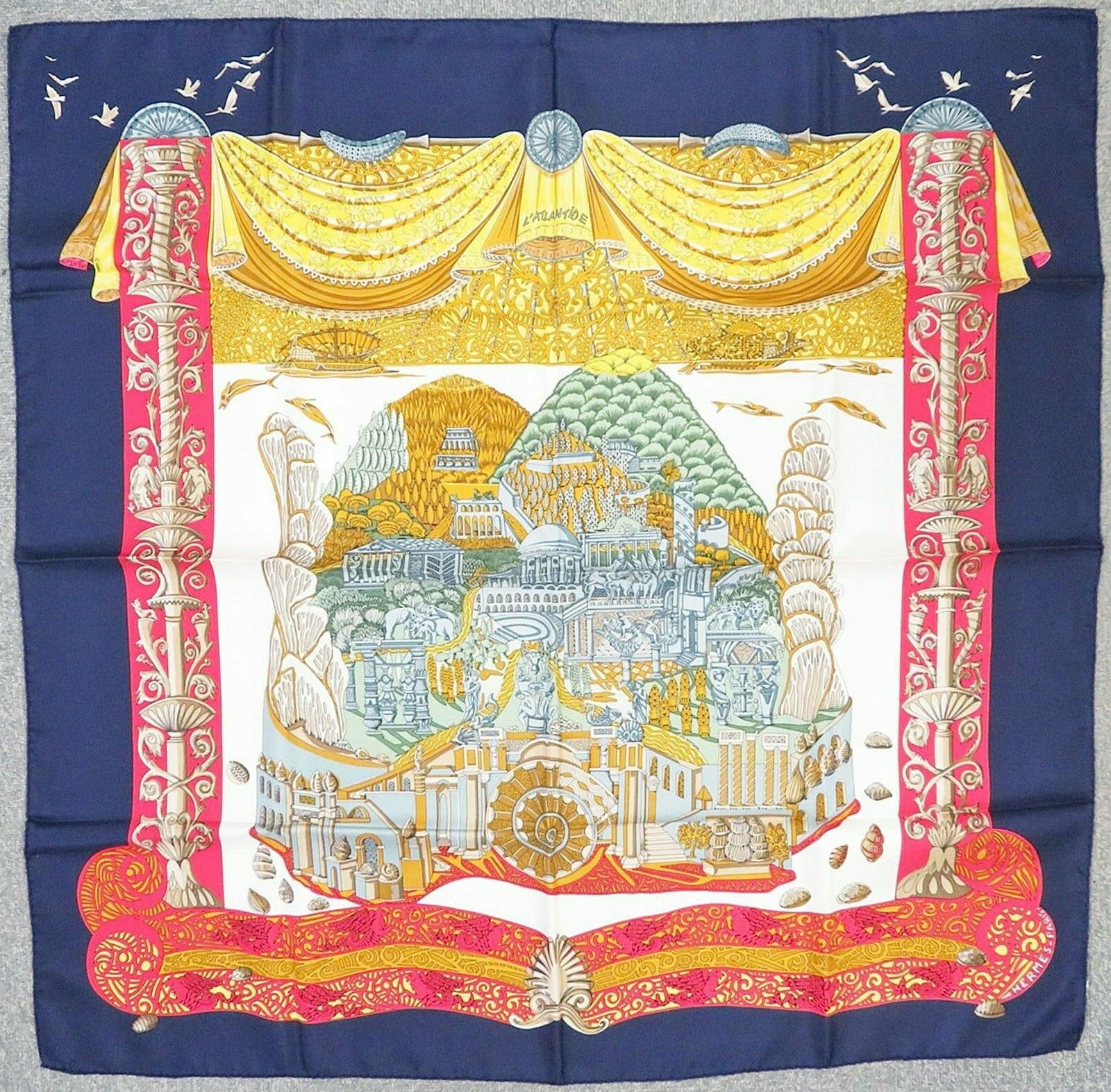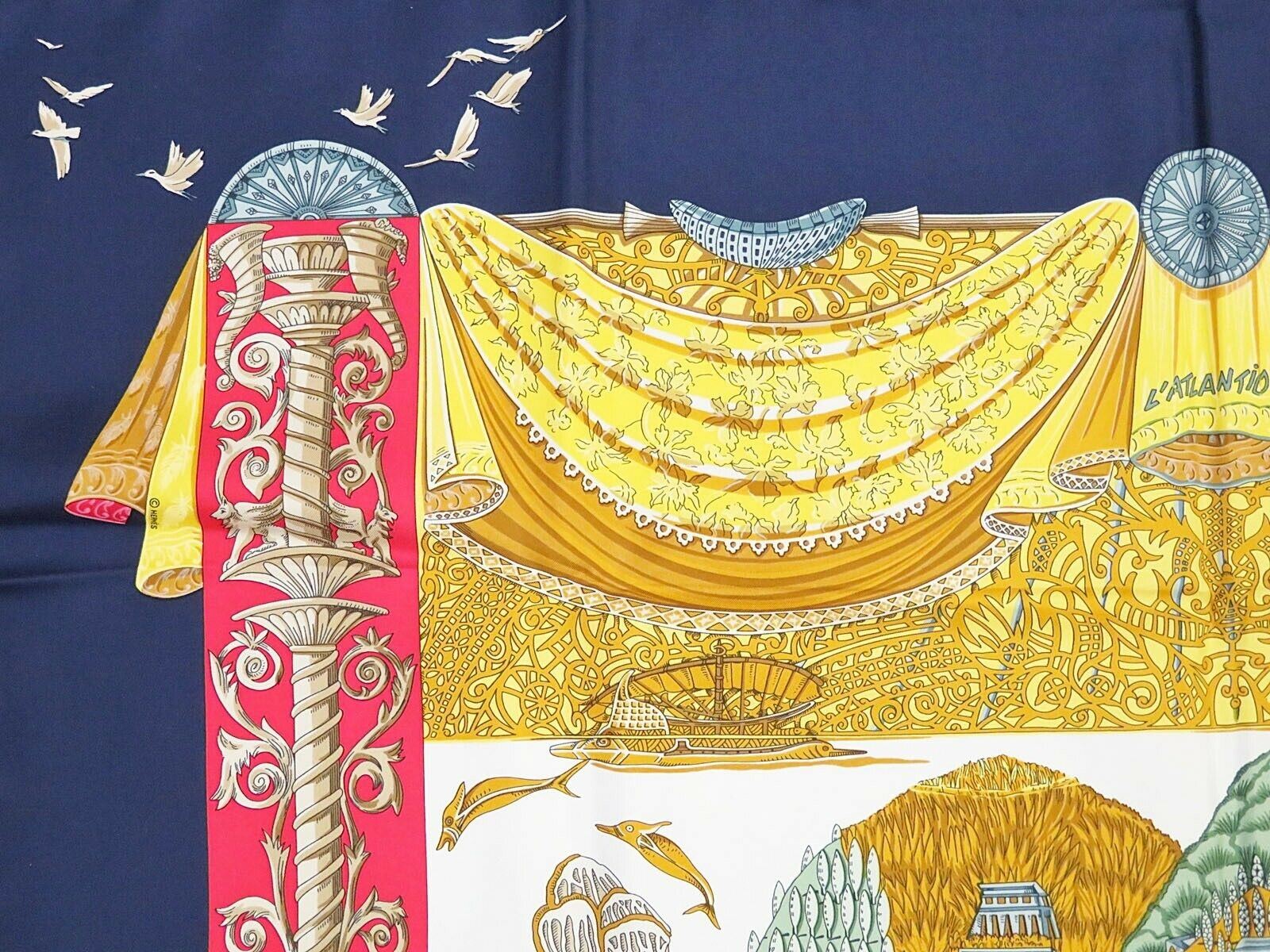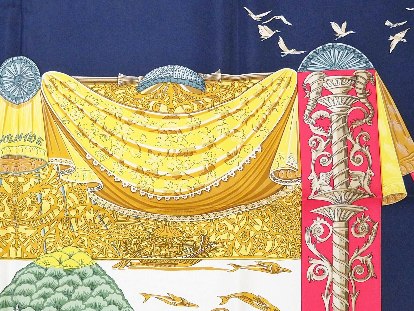 Style: HERMES L' ATLANTIDE Navy Blue 100% Silk Scarf w/Box