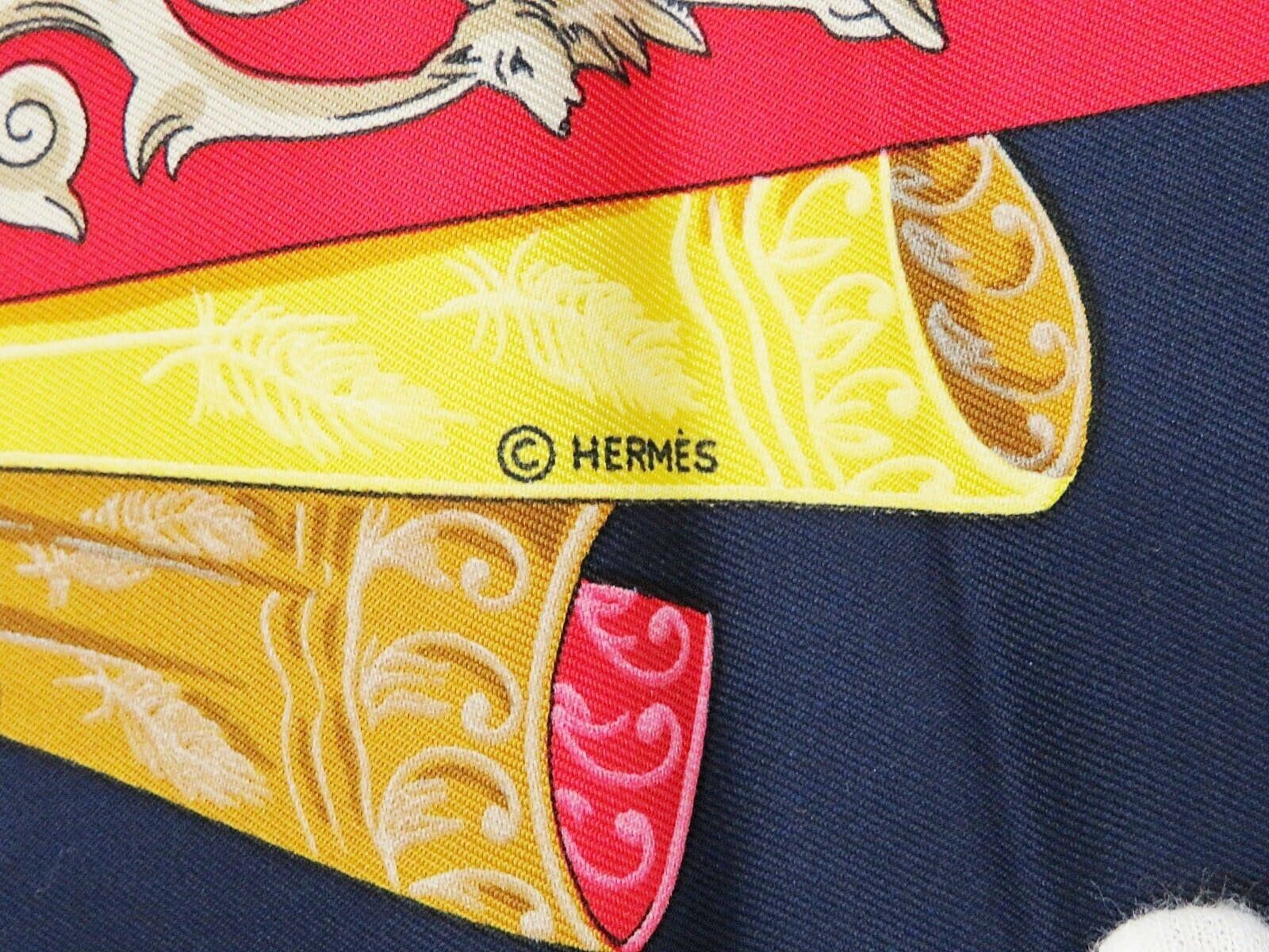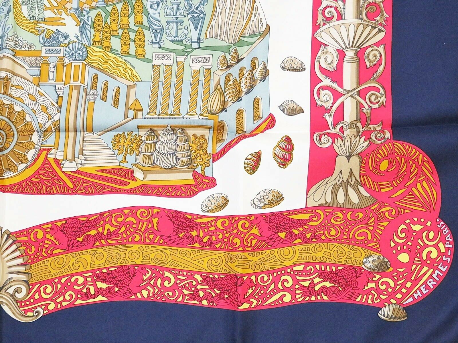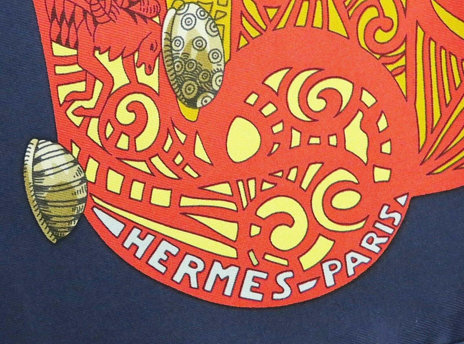 Description: 100% Silk HERMES "L'ATLANTIDE" Navy Blue 100% Silk Scarf