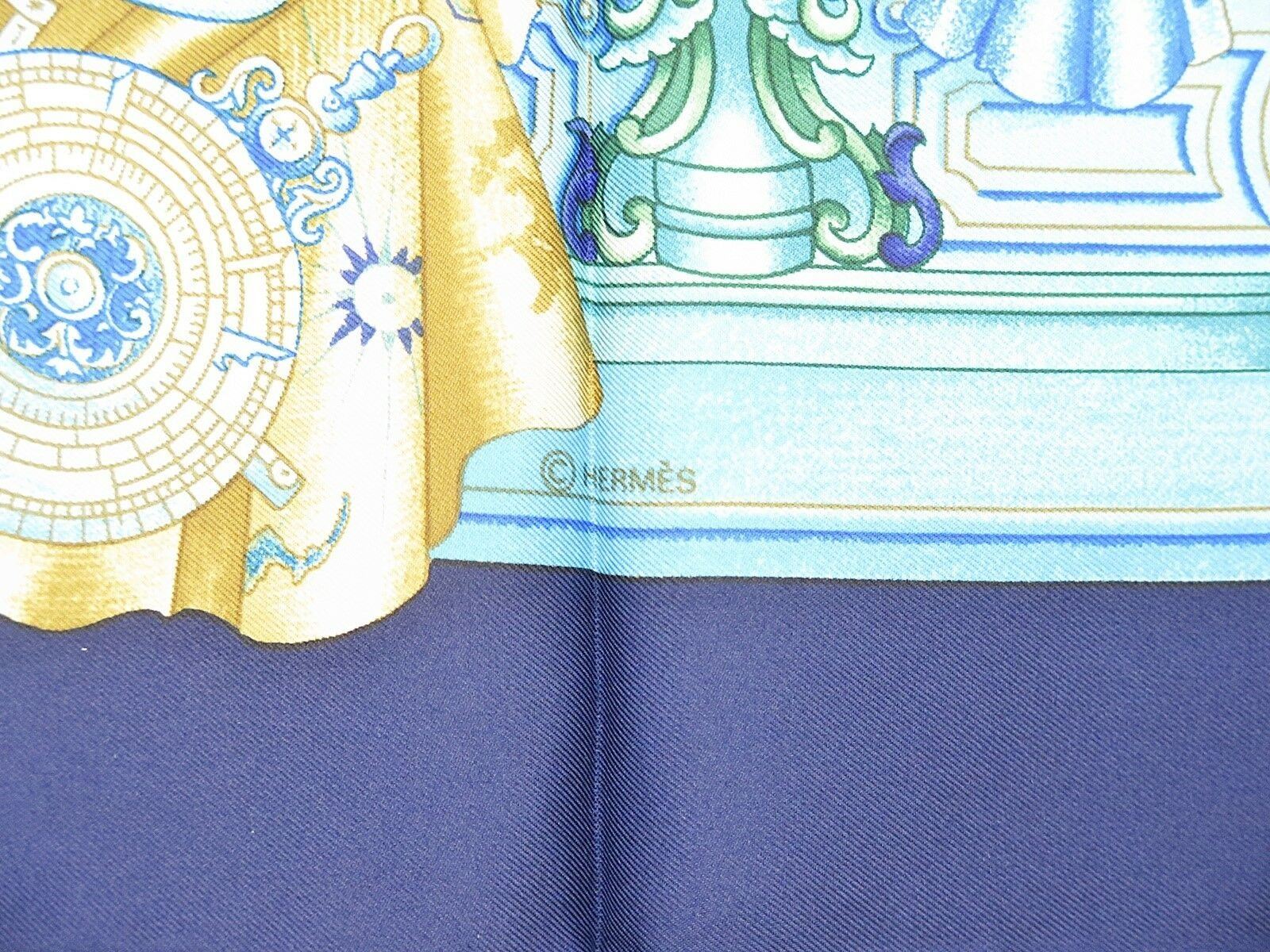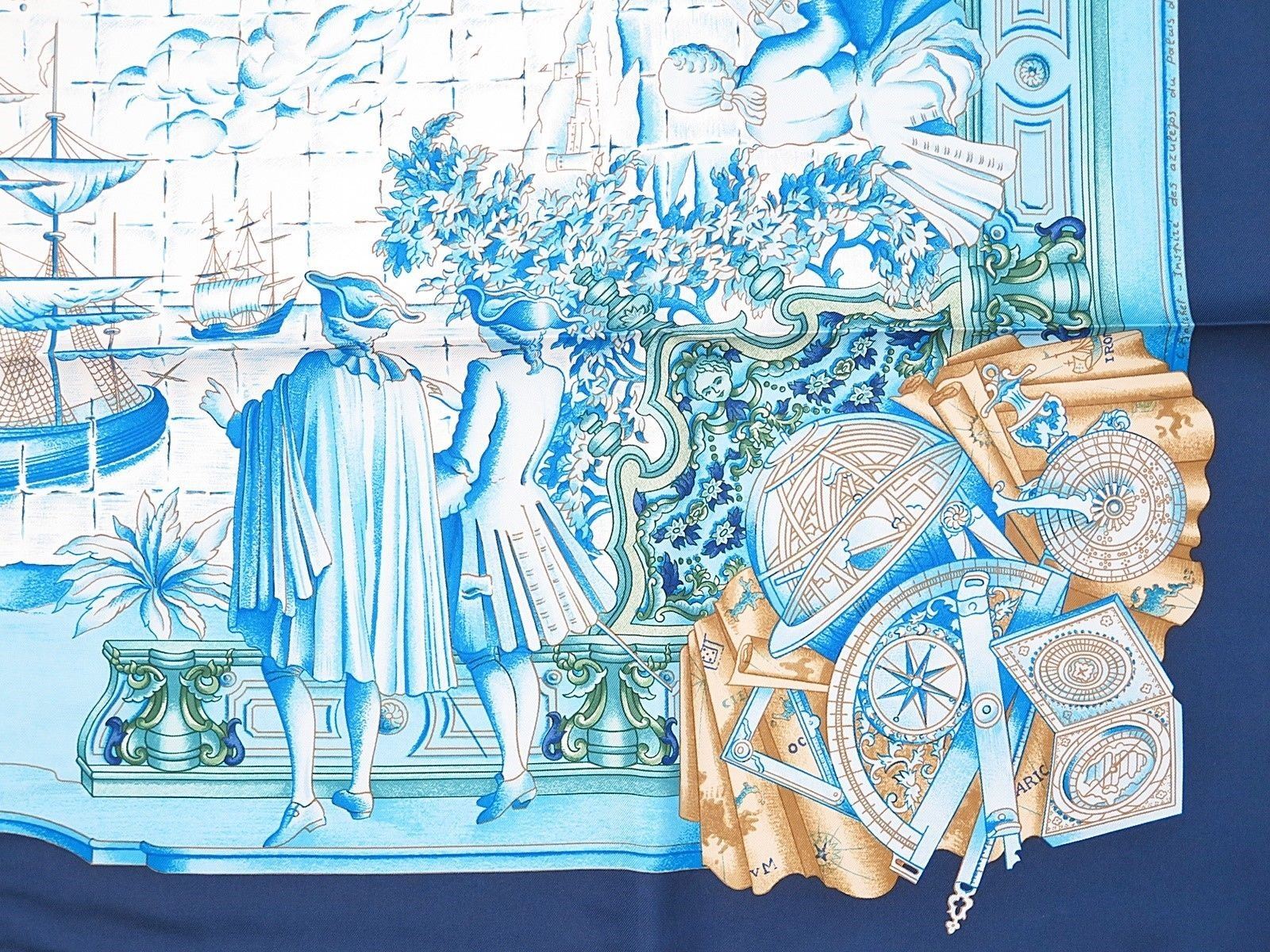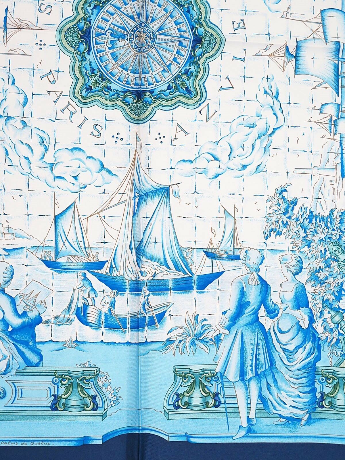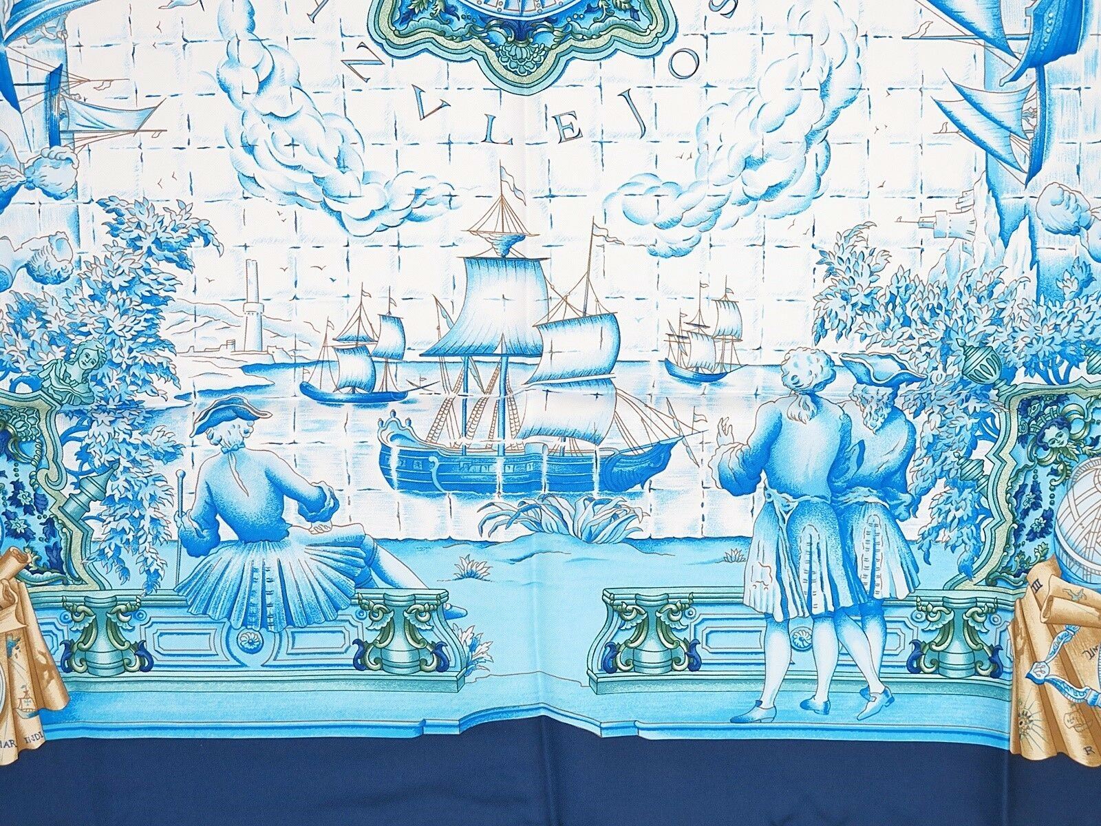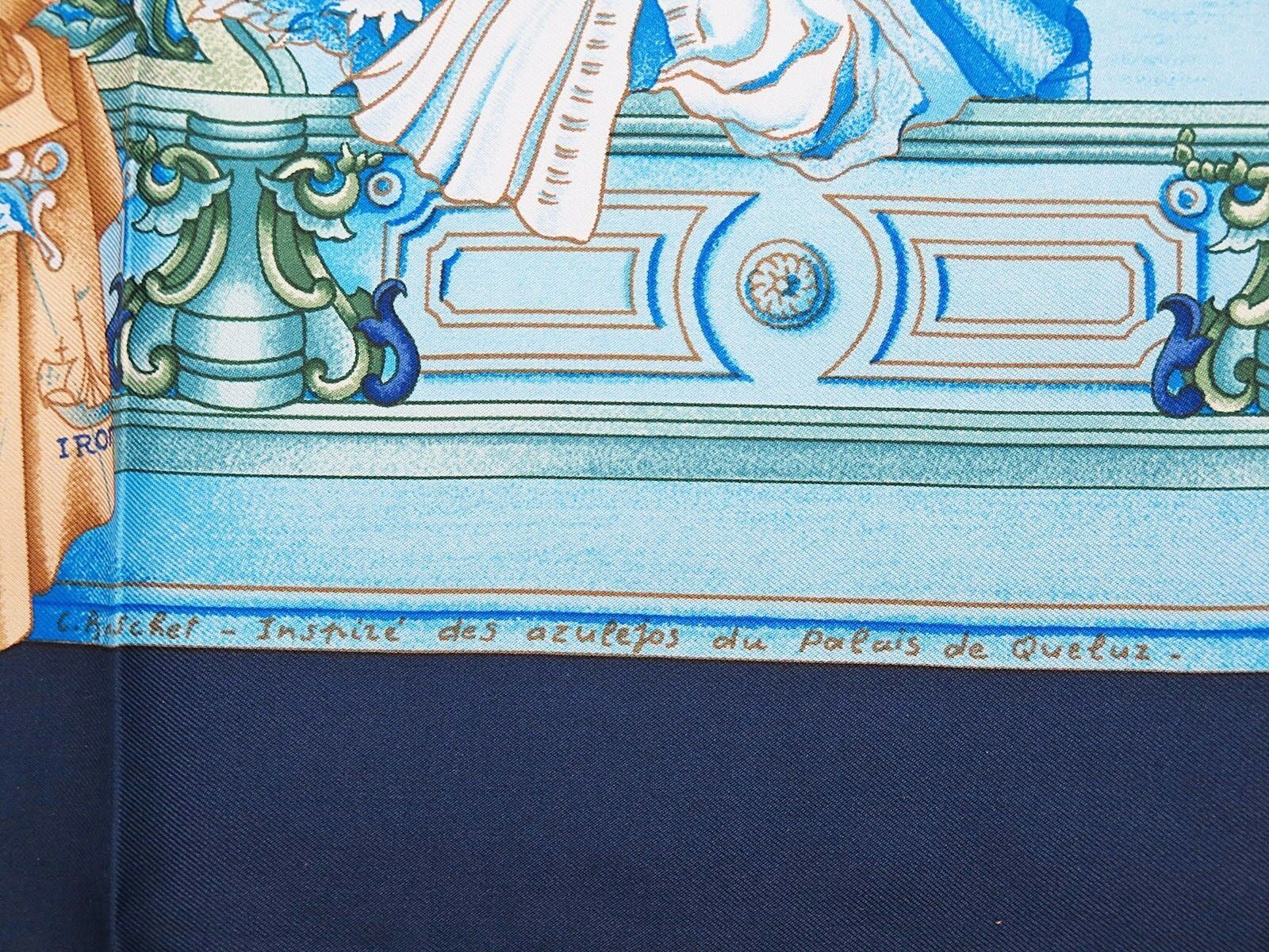 Style: HERMES "AZULEJOS" Navy Blue 100% Silk Scarf w/ Box
