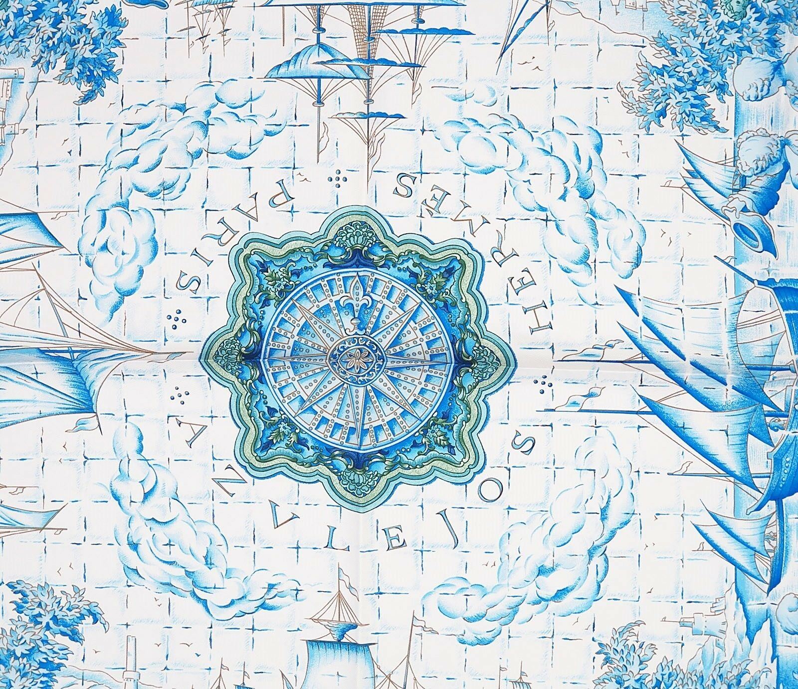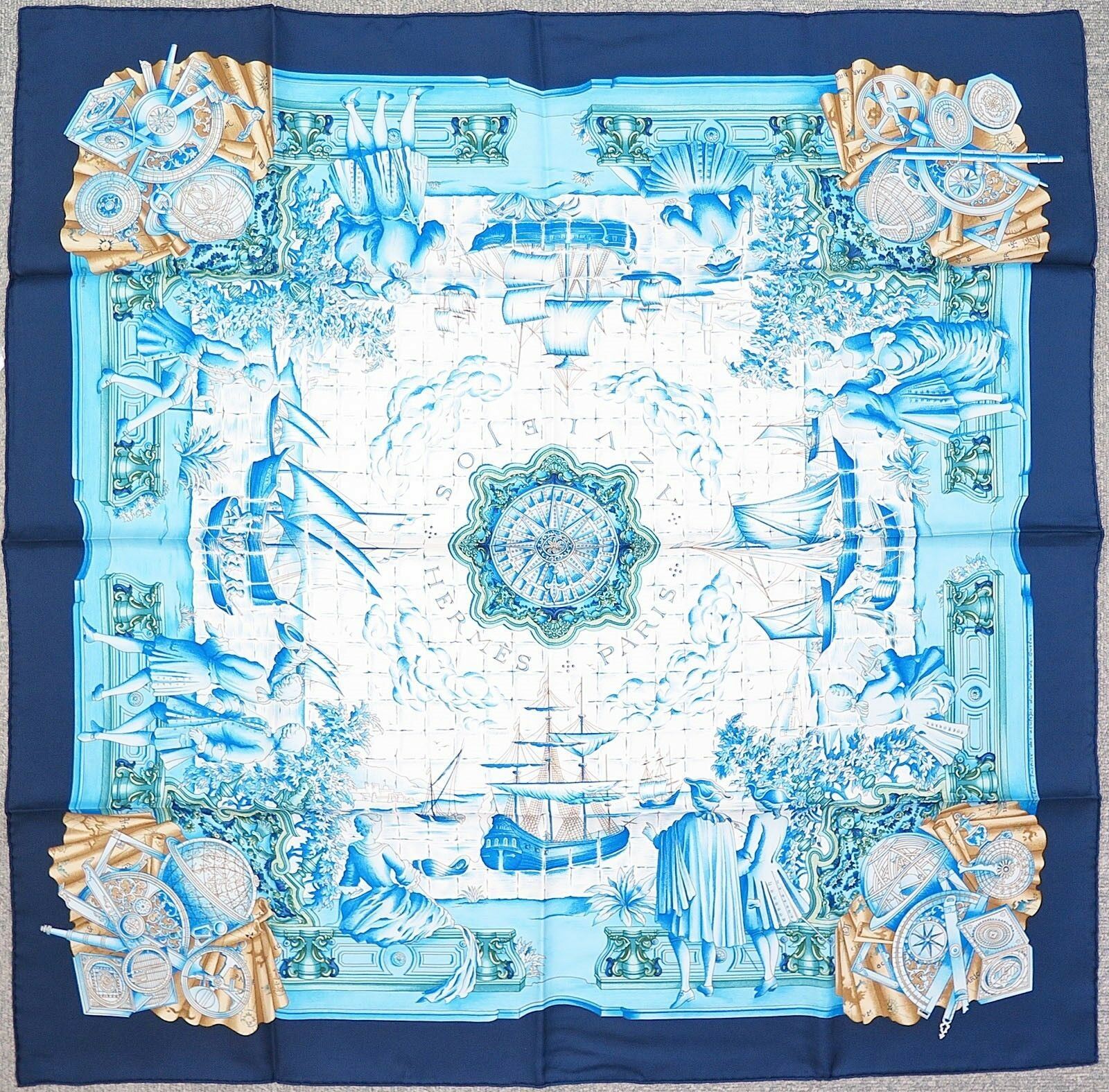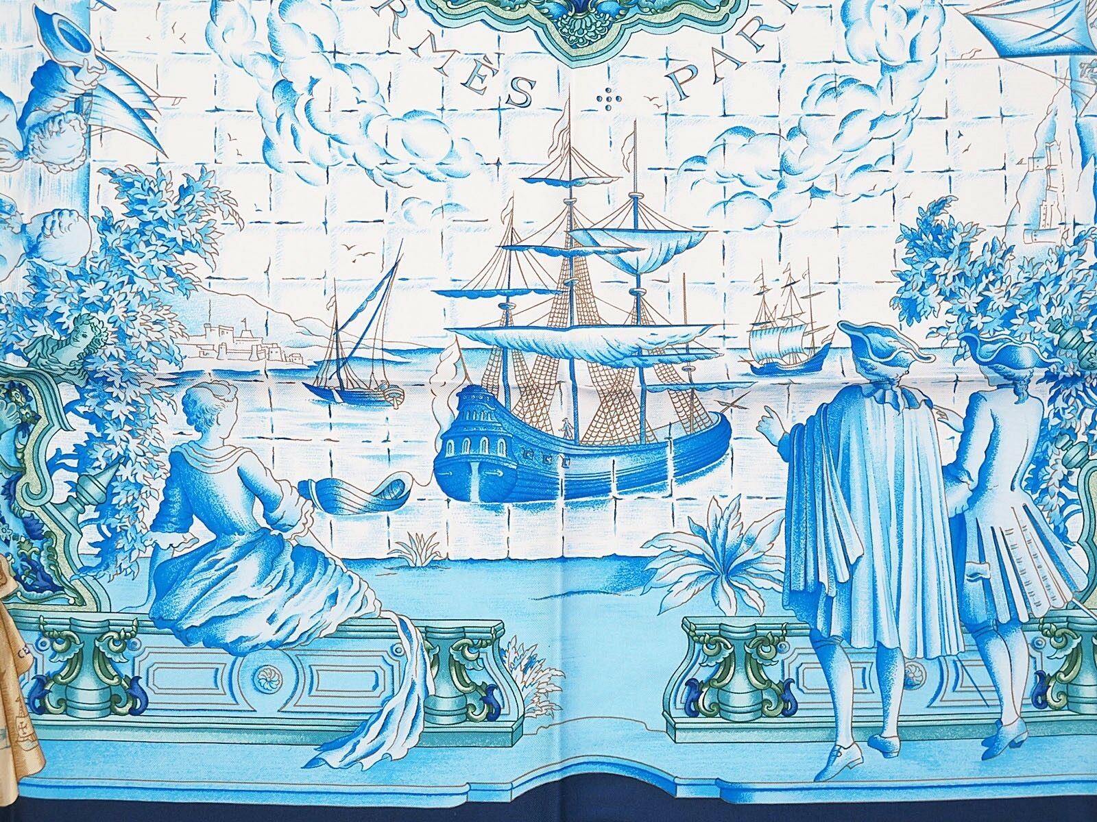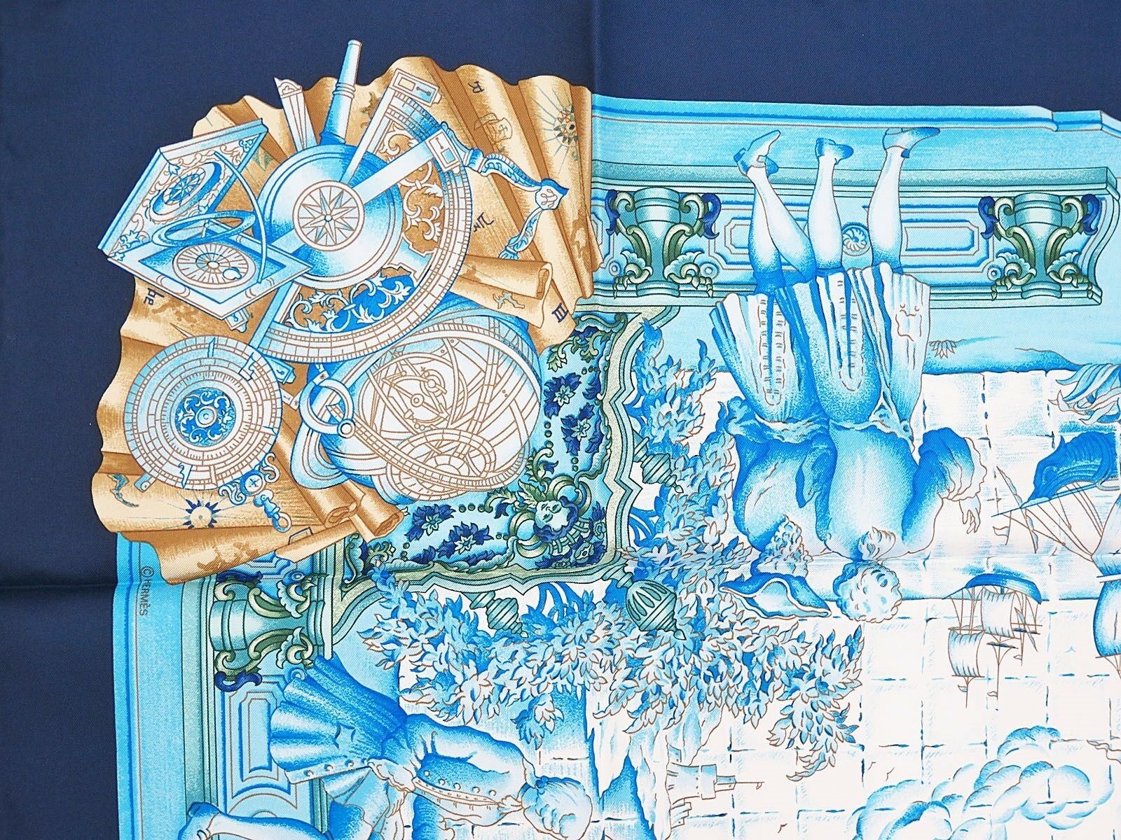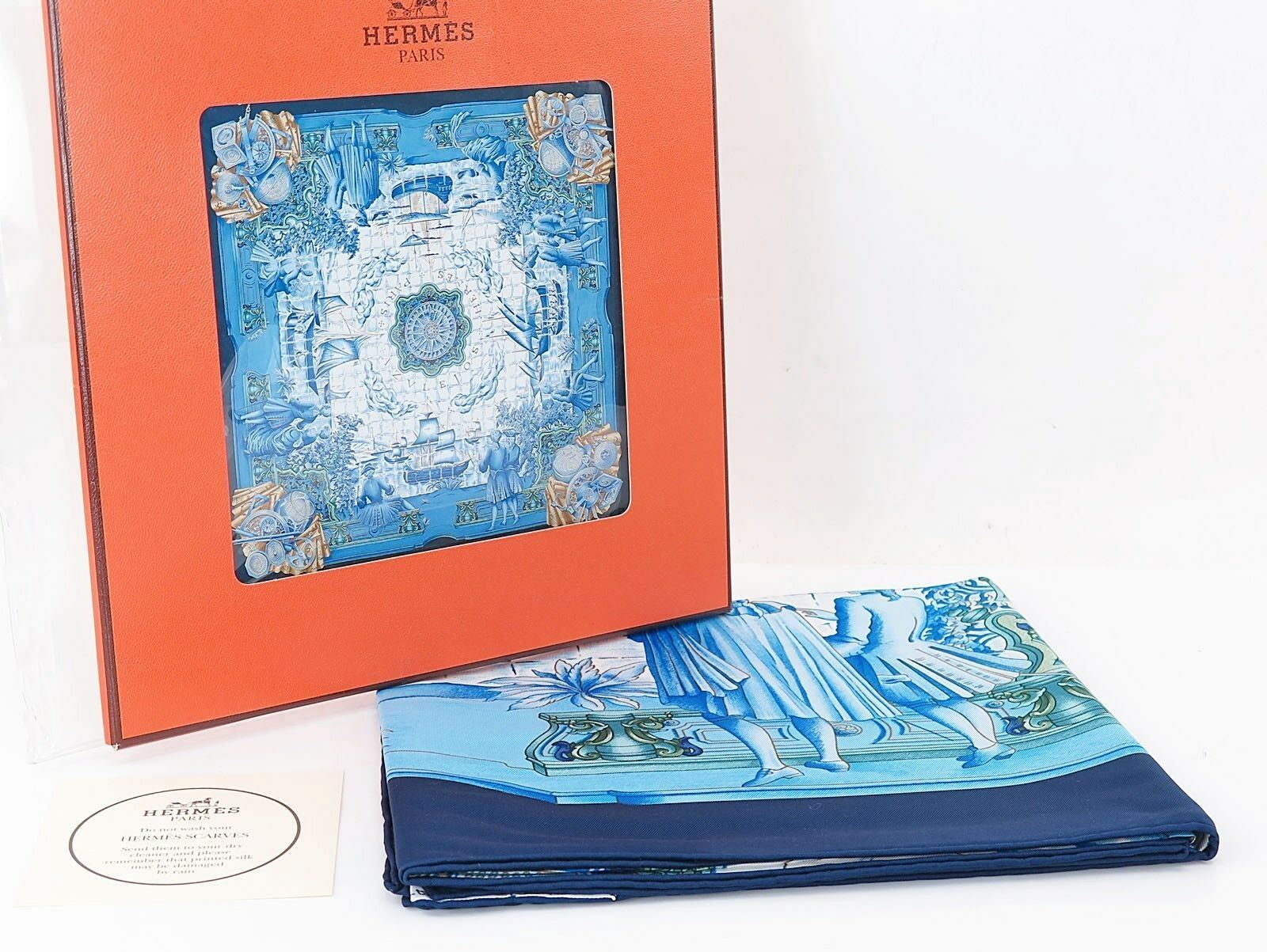 Style: HERMES "AZULEJOS" Navy Blue 100% Silk Scarf w/ Box