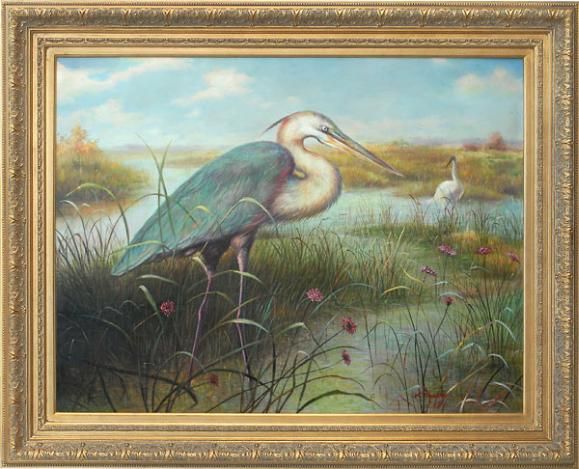 "HERONS" - ORIGINAL HAND PAINTED OIL ON CANVAS- PROFESSIONALLY FRAMED - IMAGE 30x 40" - FRAMED 38x 48"