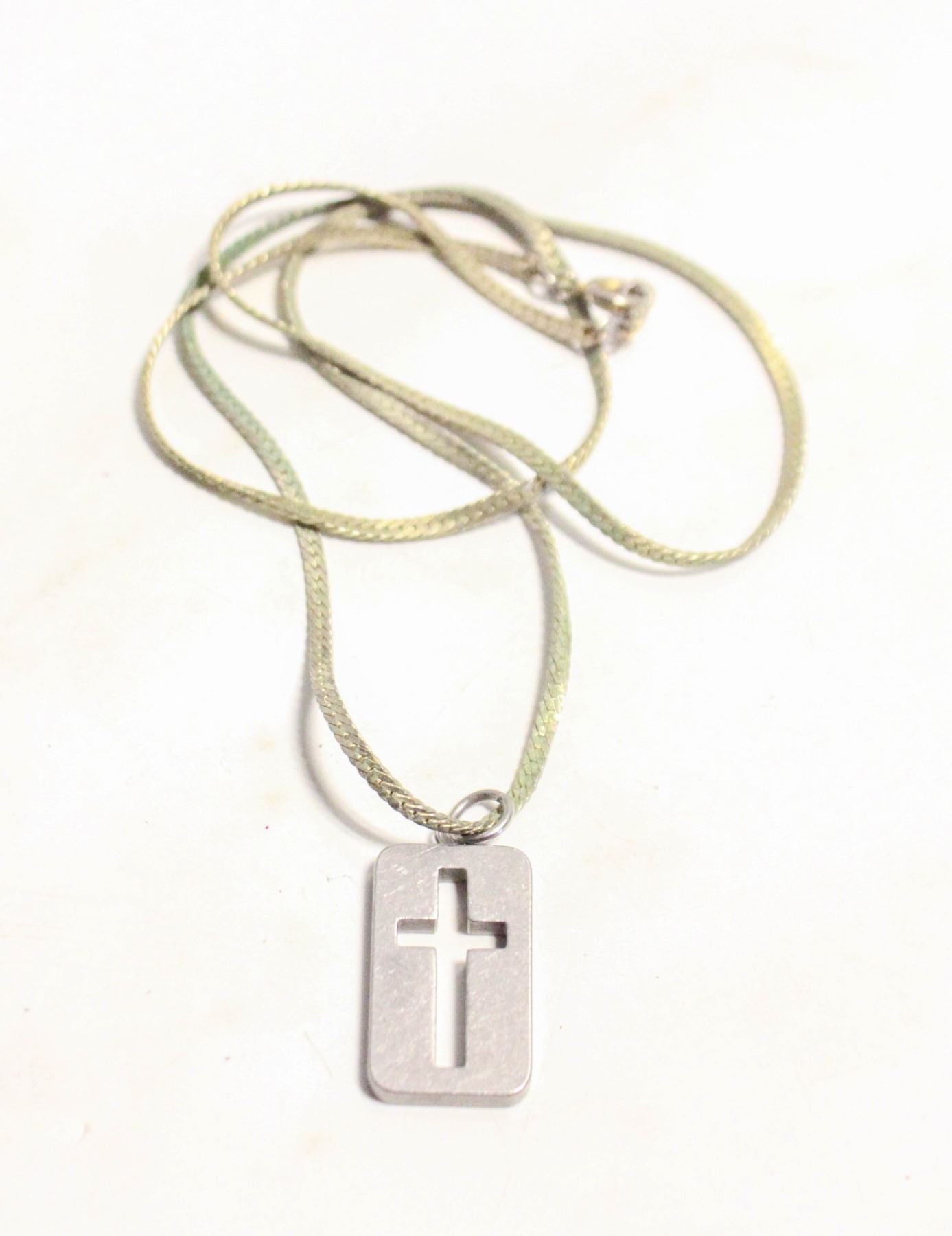 HERRINGBONE NECKLACE 20" CROSS PENDANT