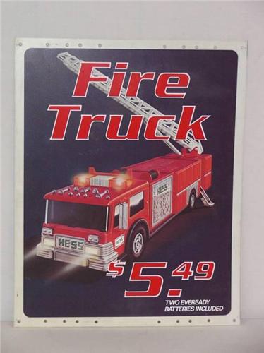 HESS FIRE TRUCK ADVERTISING SIGN (22 1/2" X 18") - WEAR;
