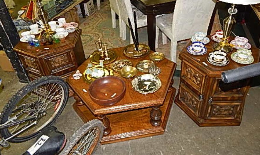 HEXAGON COFFEE TABLE AND END TABLE SET = 3PC TOTAL