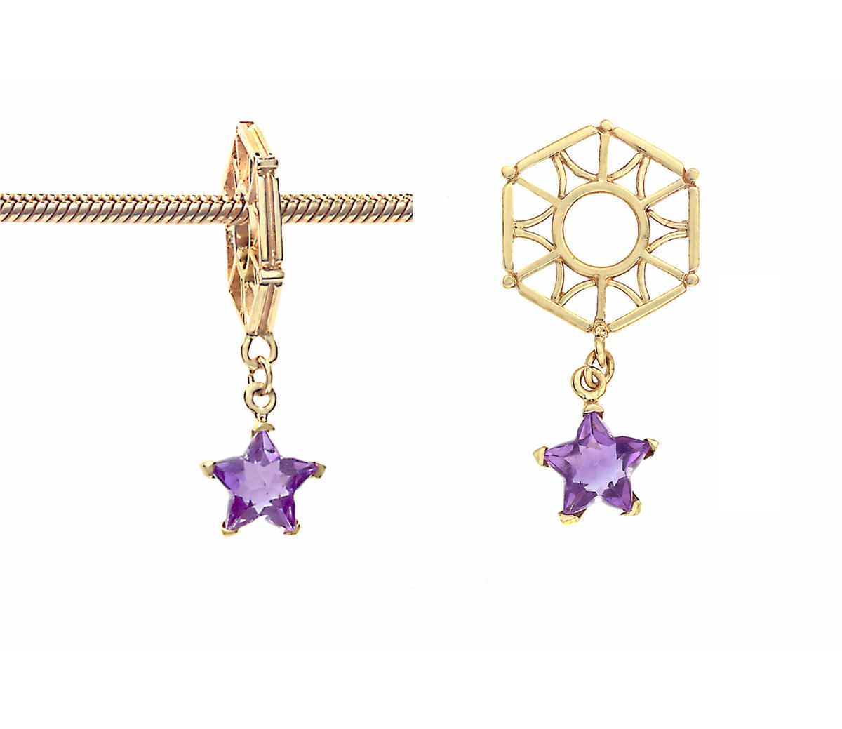 HEXAGON GOLD WHEEL W/ AMETHYST STAR DANGLE (#3PLAINA) TOTAL CT WEIGHT 0.9