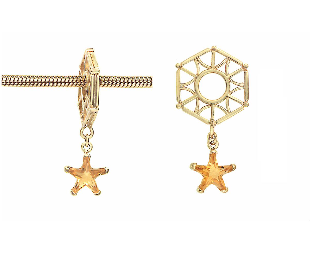HEXAGON GOLD WHEEL W/ CITRINE STAR DANGLE (#3PLAINC) TOTAL CT WEIGHT 0.5