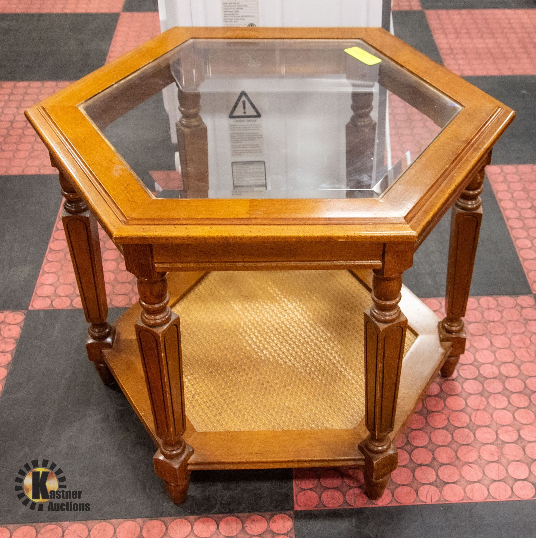 HEXAGON TABLE - WOOD/GLASS 27" X 24" X 21"