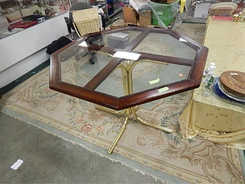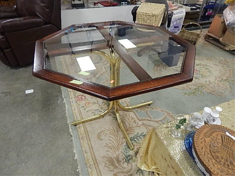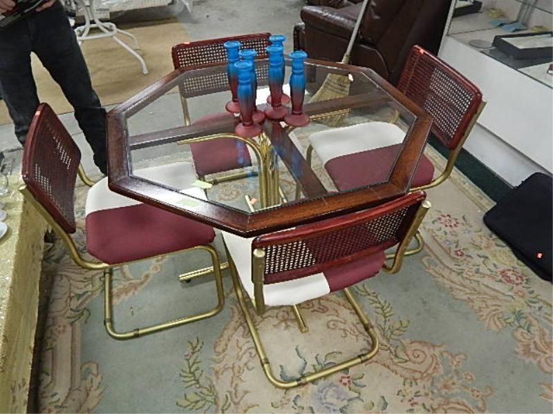 HEXIGON GLASS TOP DINNING TABLE WITH 4 CHAIRS
