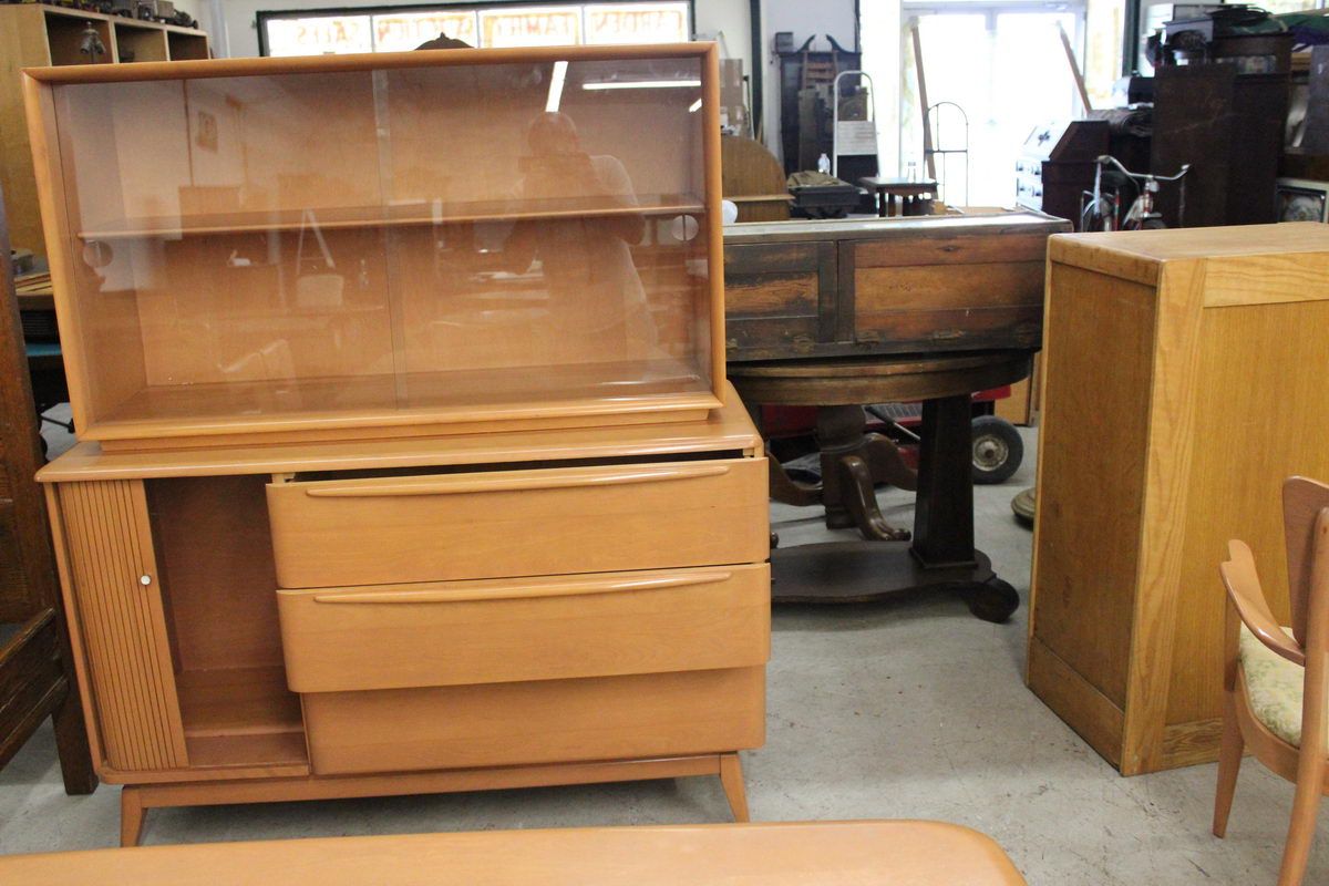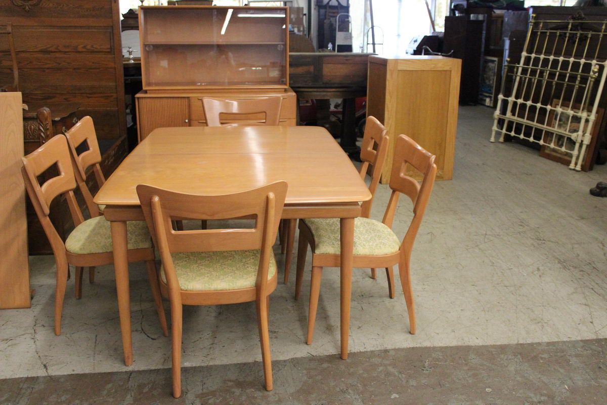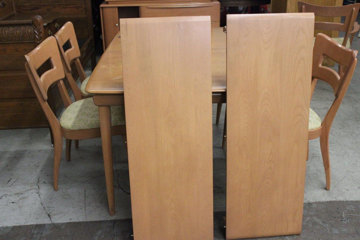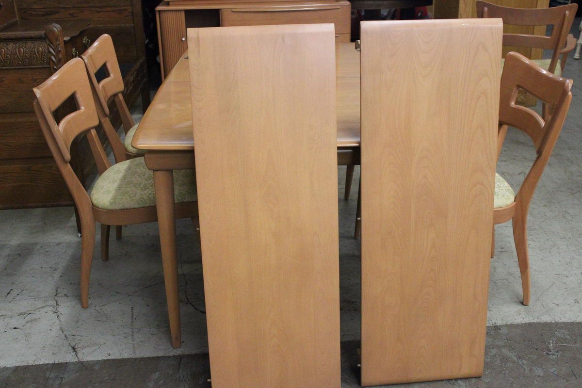 HEYWOOD WAKEFIELD 8 PIECE DINING SET - CHINA SIDEBOARD W/ UNUSUAL TAMBOUR DOOR - CHAMPAGNE FINISH