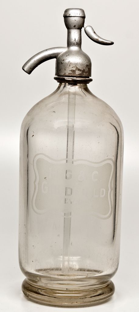 11" tall x 4" wide with footed base (two chips are evident), siphon tube and brushed metal top. A very rare, perhaps unique piece from a very unique locale. - Jacobitz Collection -59404