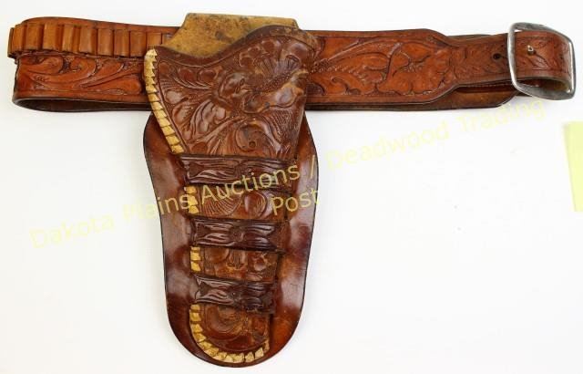 floral carved triple loop for Colt SA .32 cal, nice original condition, fitting 28"-32" waist. Est. 275-375