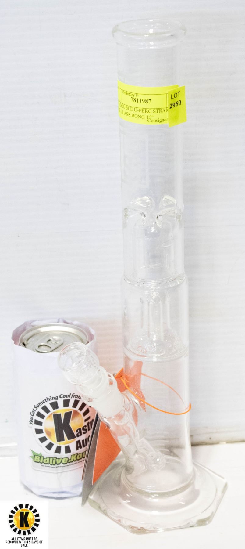 HI-SI DOUBLE U-PERC STRAIGHT TUBE GLASS BONG 15"