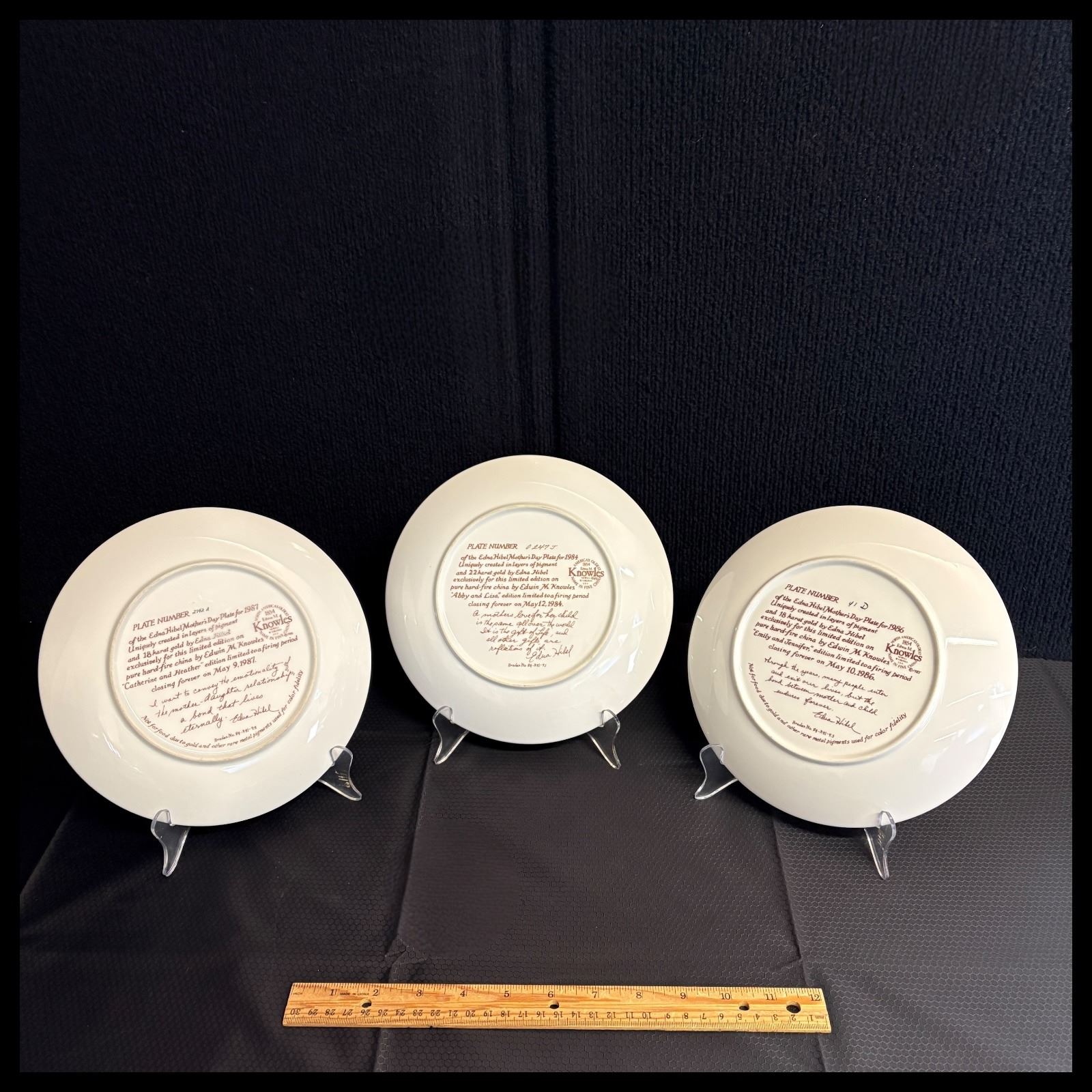 Unless otherwise indicated measuring devices such as rulers and display stands for trays, plates, etc. as seen in photos are not included in the Lot.