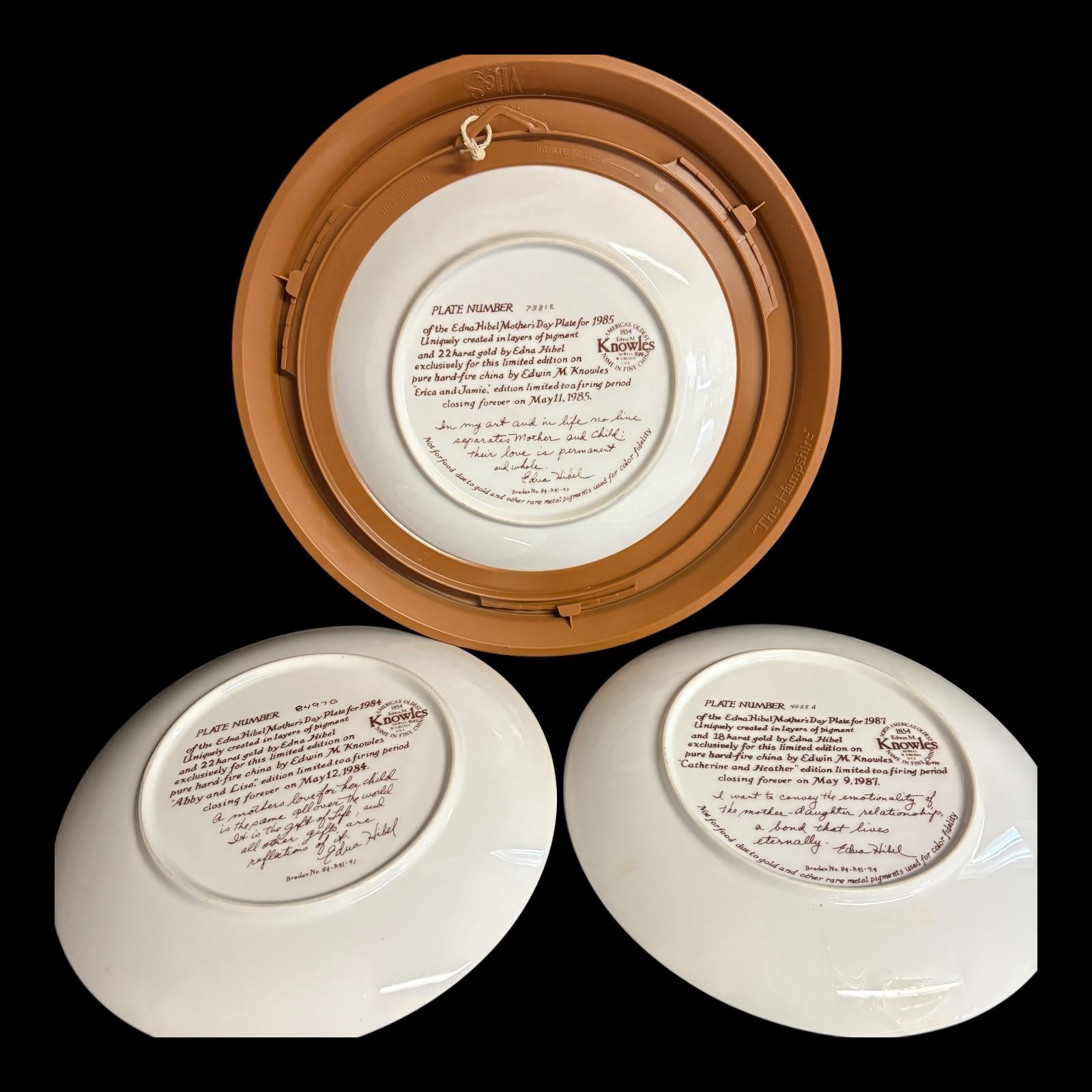 Doll is NEW in open box, plate frames are plastic composition that look like wood - plates 8.5 in. diameter