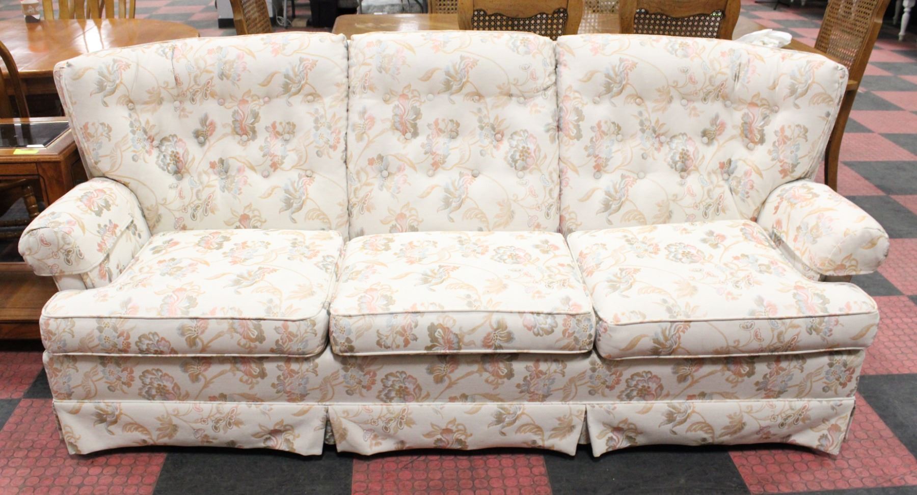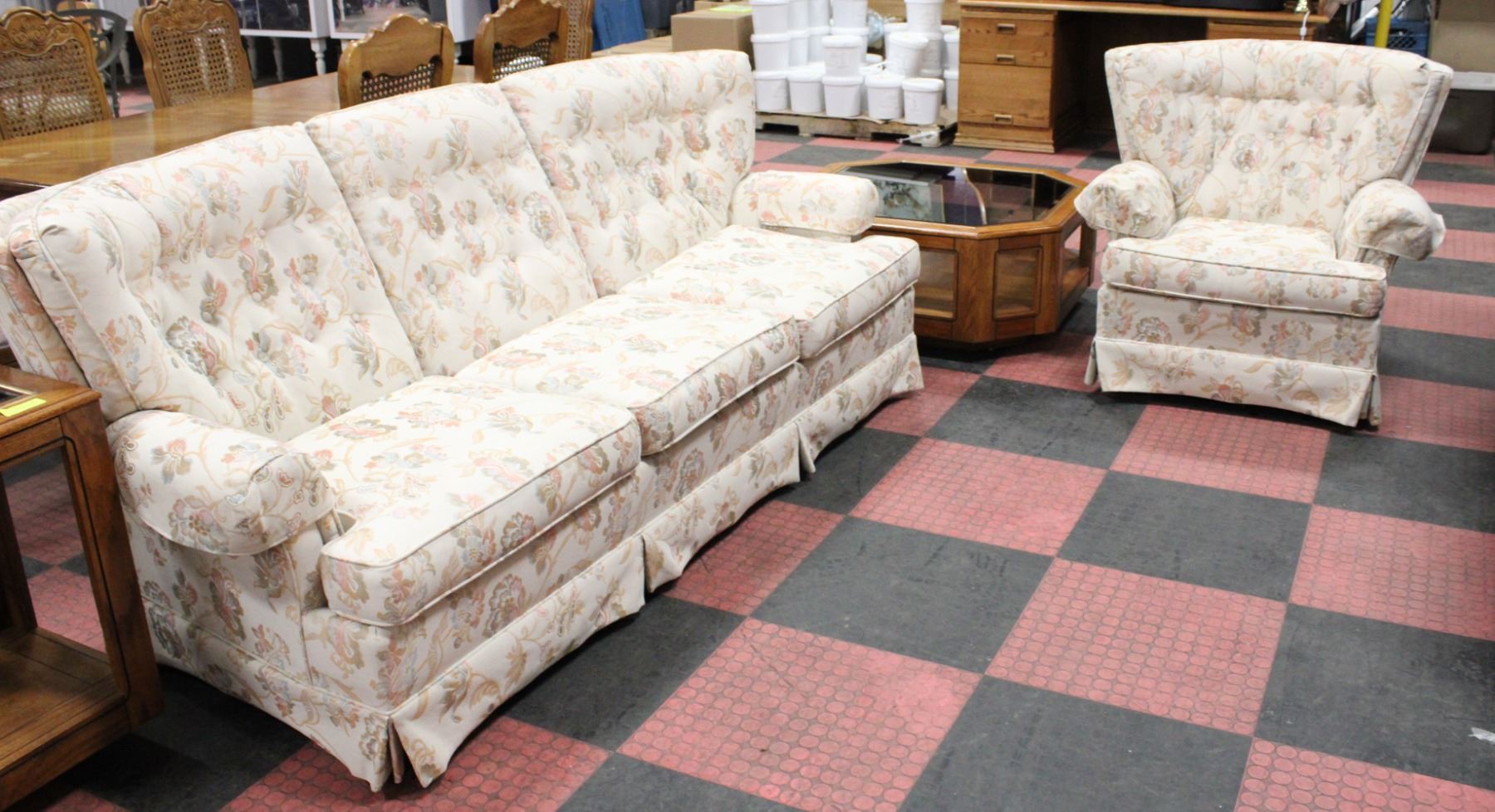 WITH ARM COVERS. SOFA: 88" WIDE, 35" TALL X 32 " DEEP. CHAIR: 36" WIDE X 35" TALL X 32" DEEP