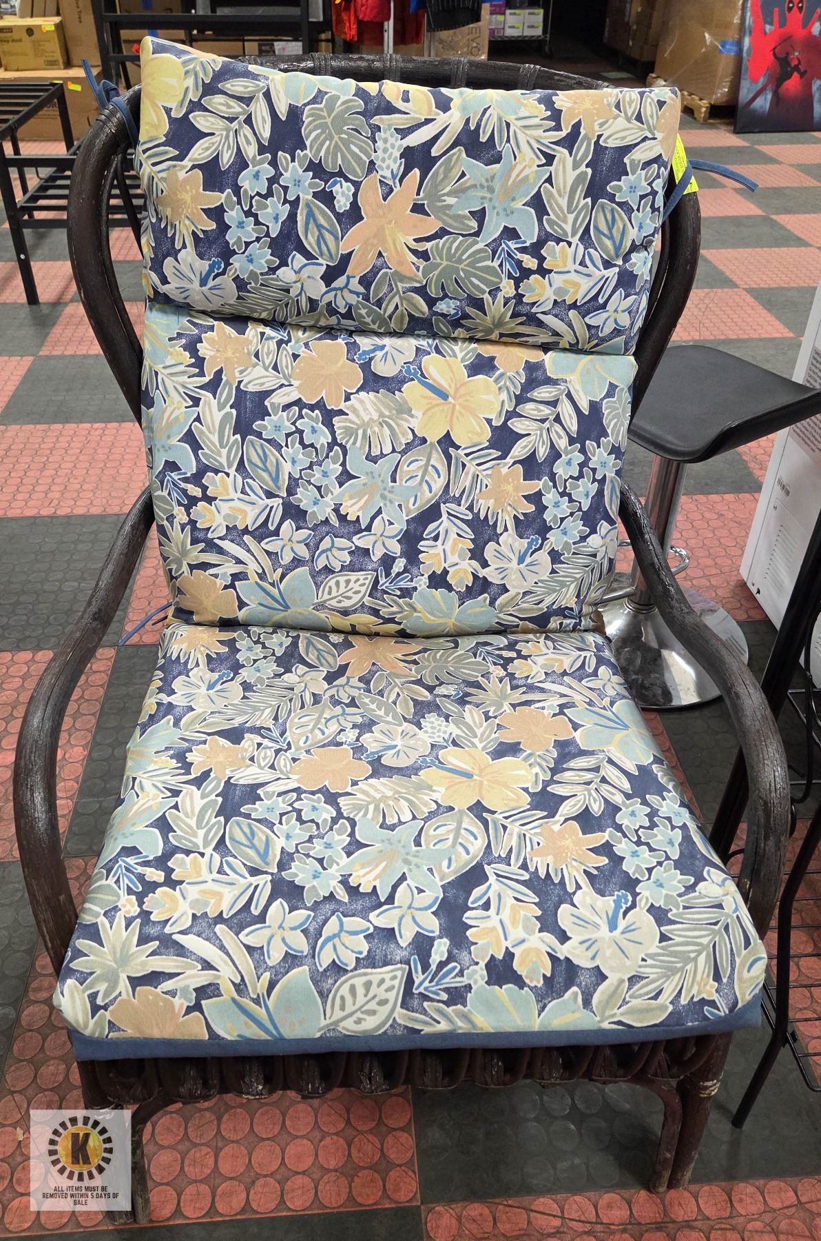 HIGH BACK WICKER INDOOR/PATIO CHAIR WITH CUSHION