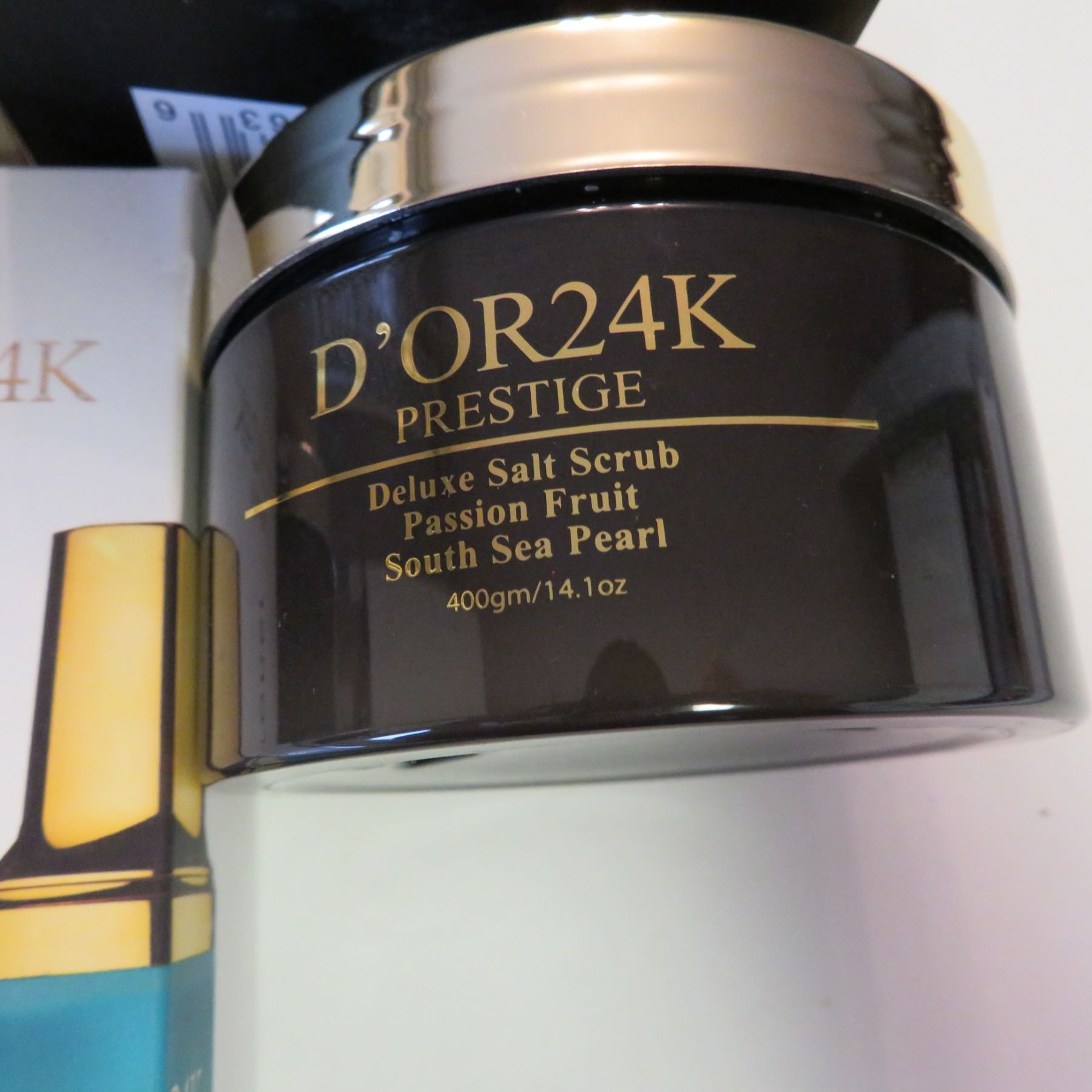 HIGH END Makeup lot. This super high end/expensive makeup lot includes D24K Instant Lift Cream, D'OR24K Multi Vitamin Recovery Day Cream, Hydra Fresh Toner, Deluxe Shea Body Butter, Deluxe Salt Scrub & Dynamic Innovation Lab Age Defying Bio-Activator Serum. Retail can be as high as $2100 for this lot
