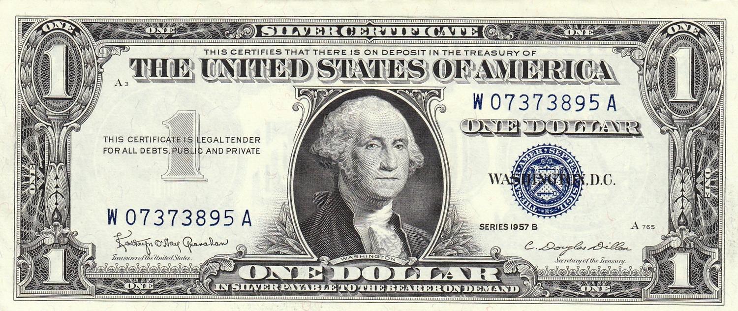 HIGH GRADE $1 SILVER CERTIFICATE 1957 b