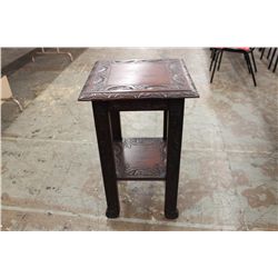 HEAVILY CARVED MAHOGANY STAND - 30" TALL - TOP 18" SQUARE