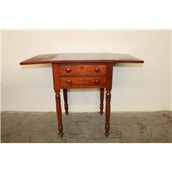 1860'S GREAT 2 DRAWER CHERRY DROP LEAF STAND W/ TURNED LEGS